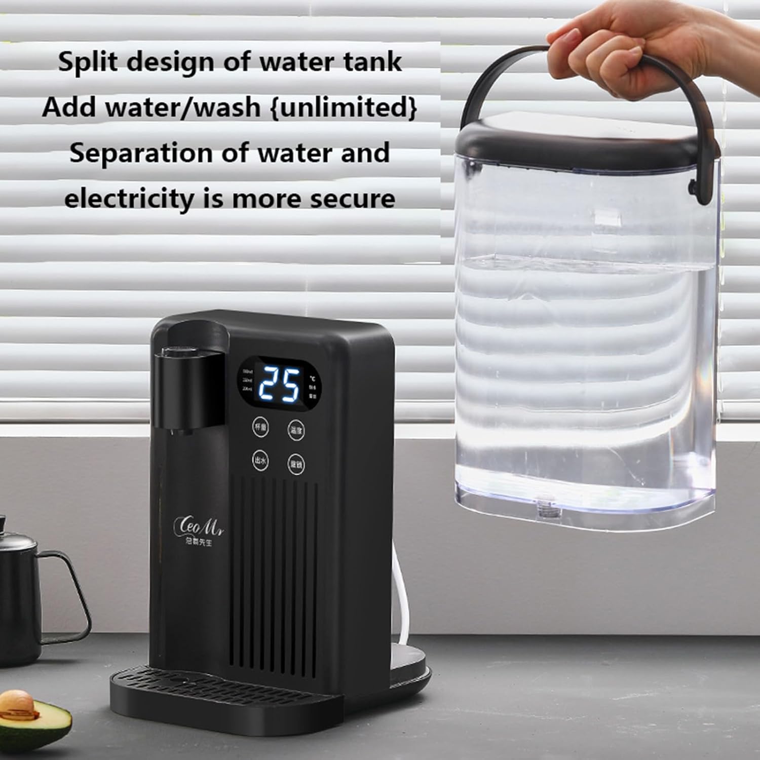 ★【Split 3 L Tank & Bottle Hose】: Lift-out BPA-free reservoir for easy washing, or plug the 1 m silicone hose directly into a 5 gal bottle—unlimited hot water .