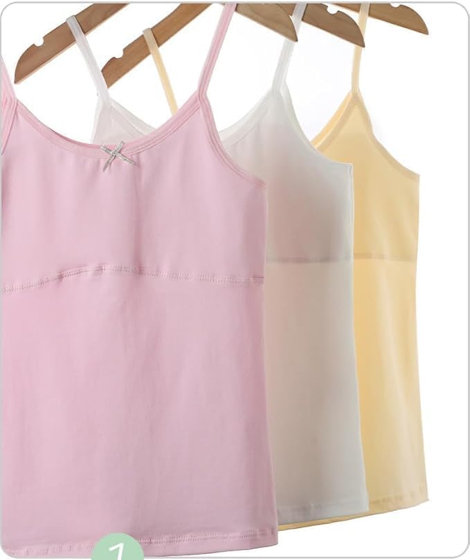 Designed with a cotton-lined training bra, these camisoles offer subtle support, making them perfect for pre-teens transitioning into wearing bras.
