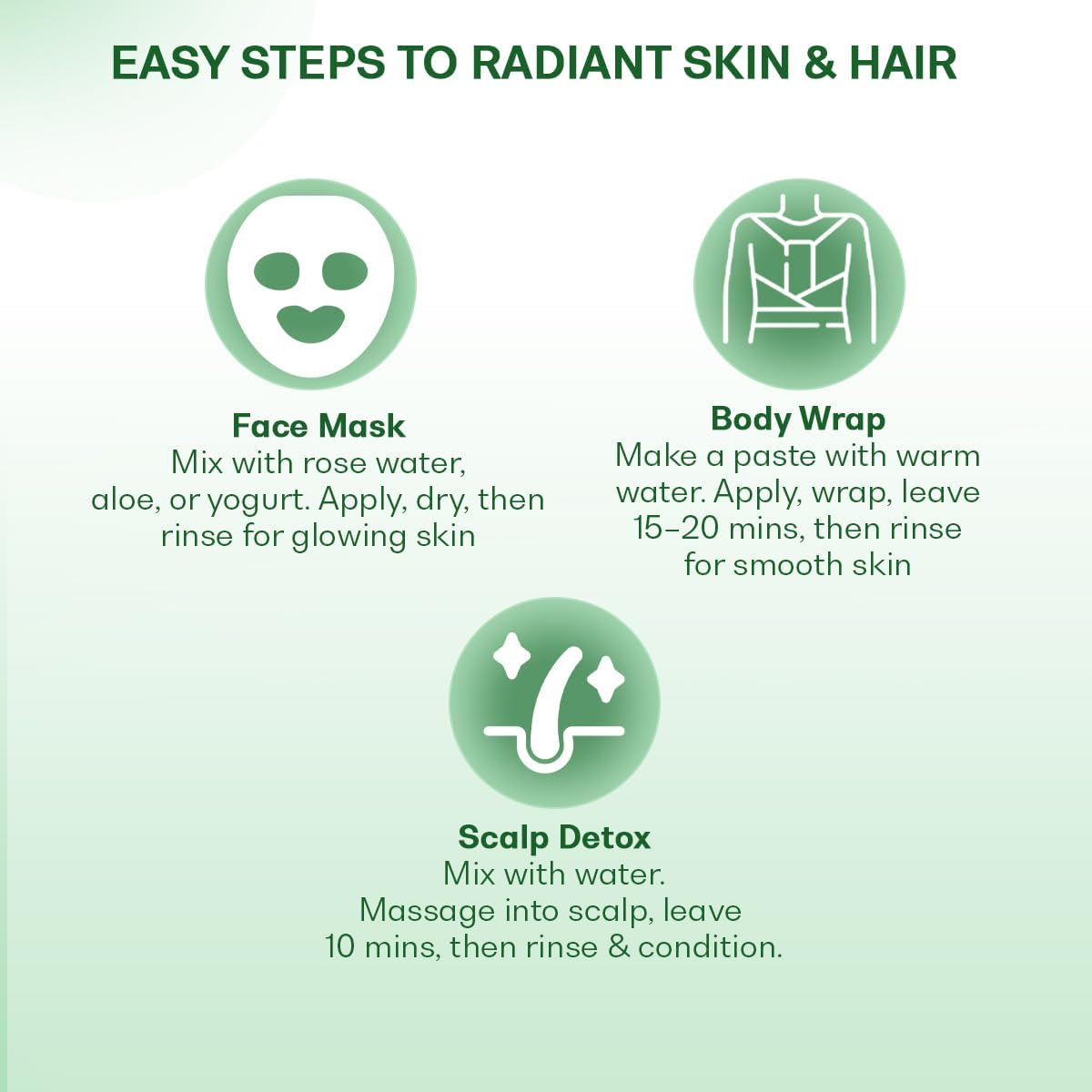 Naturally exfoliates and revitalizes the skin, making it perfect for body wraps and spa-like treatments that leave your skin smooth, toned, and refreshed.