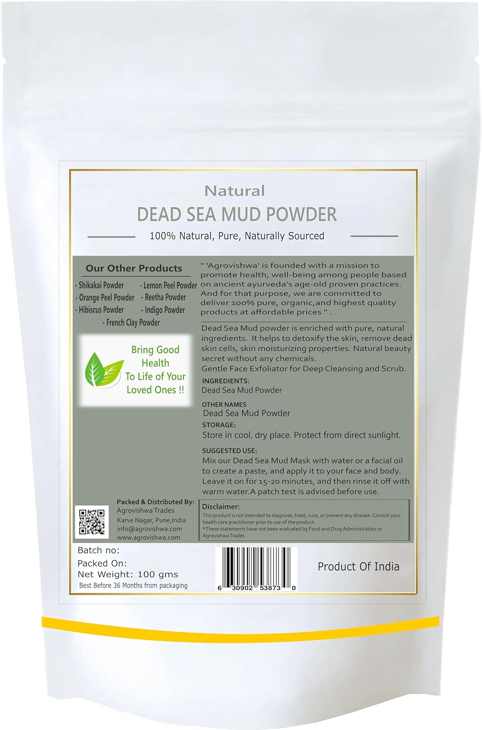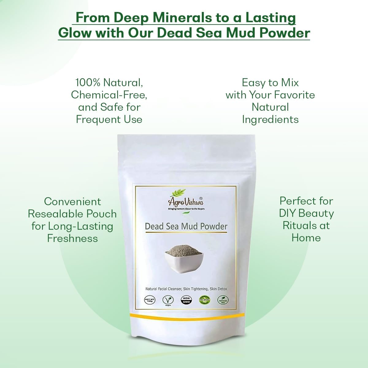 𝐌𝐈𝐍𝐄𝐑𝐀𝐋-𝐑𝐈𝐂𝐇 & 𝐍𝐀𝐓𝐔𝐑𝐀𝐋– This Agrovishwa Dead Sea Mud Powder Sourced from Dead Sea deposits, this powder is rich in minerals and ideal for face, body, and hair care.