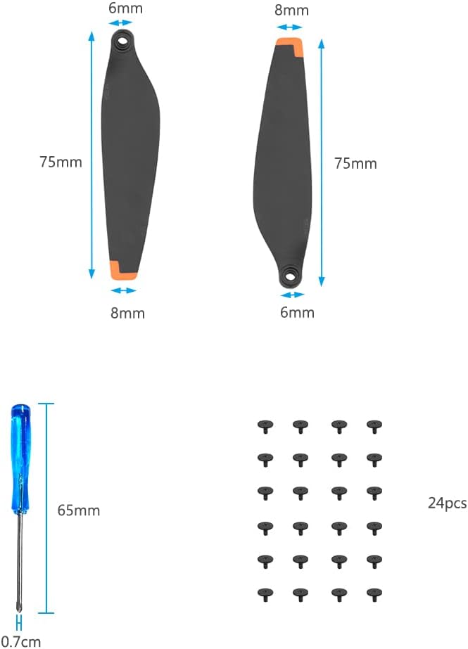📦【PACKAGE 】This propeller is only suitable for DJI Mini 3 Pro drone. Package includes: 16 drone blades, 24 screws and 1 screwdriver. Note: Please confirm whether the product matches your drone model before purchasing.