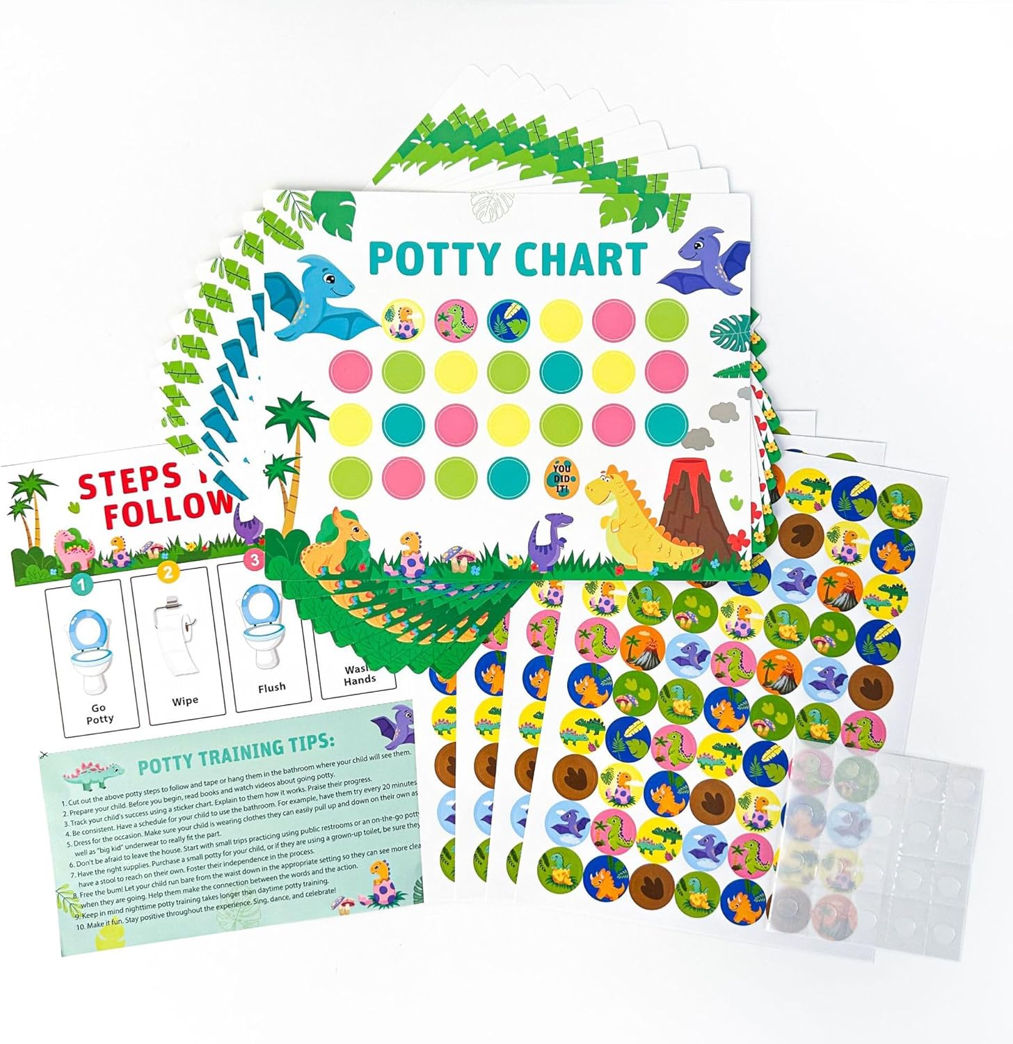 👶【Effective Rewarding System】Potty training reward for toddlers such as dinosaur or mermaid stickers is a great way to encourage your toddler. Follow the potty chart for training moments and each time your child completes a task, put a sticker on the milestones he has reached!