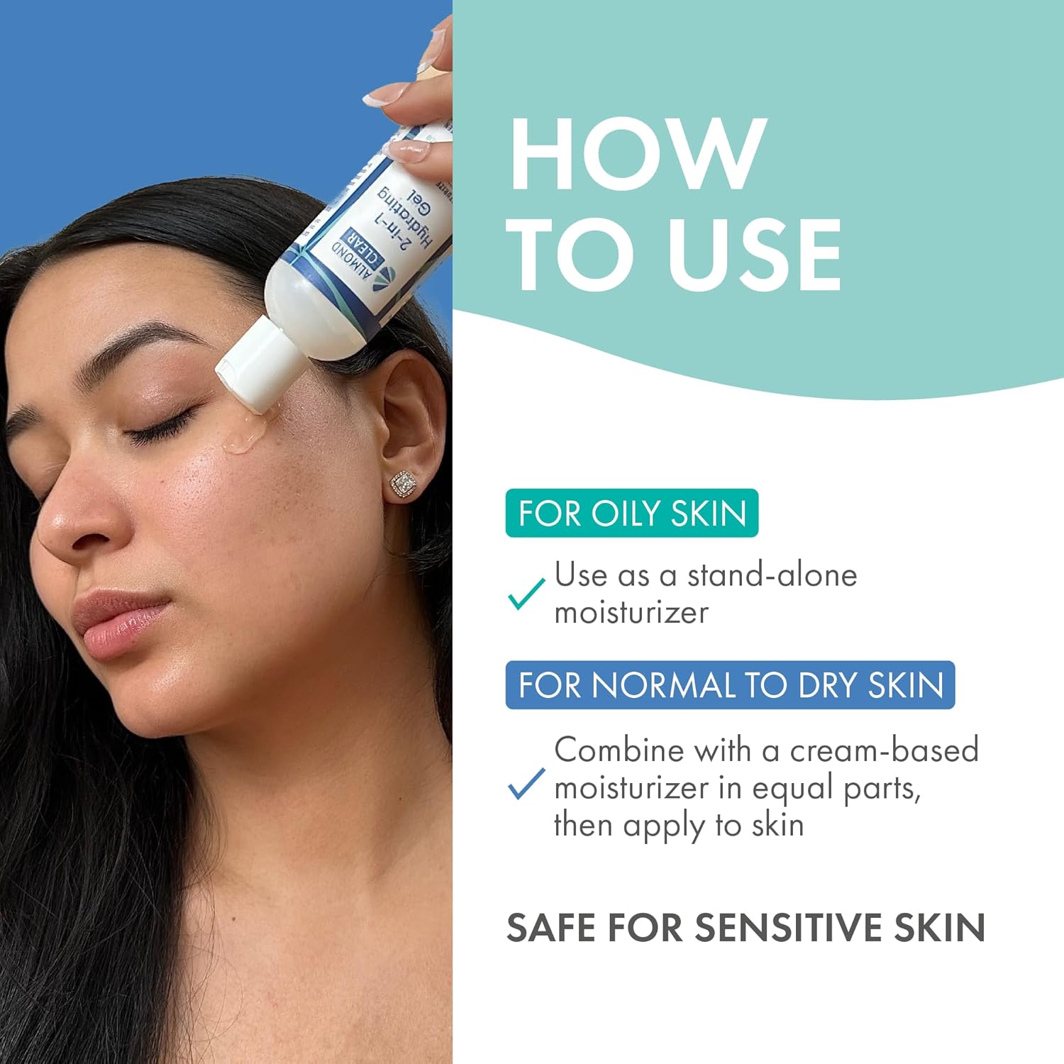 FOR NORMAL TO OILY SKIN: use as a stand-alone gel moisturizer. FOR DRY OR DEHYDRATED SKIN: Apply in combination with a cream-based moisturizer. Mix equal parts of both products, then apply to the skin.
