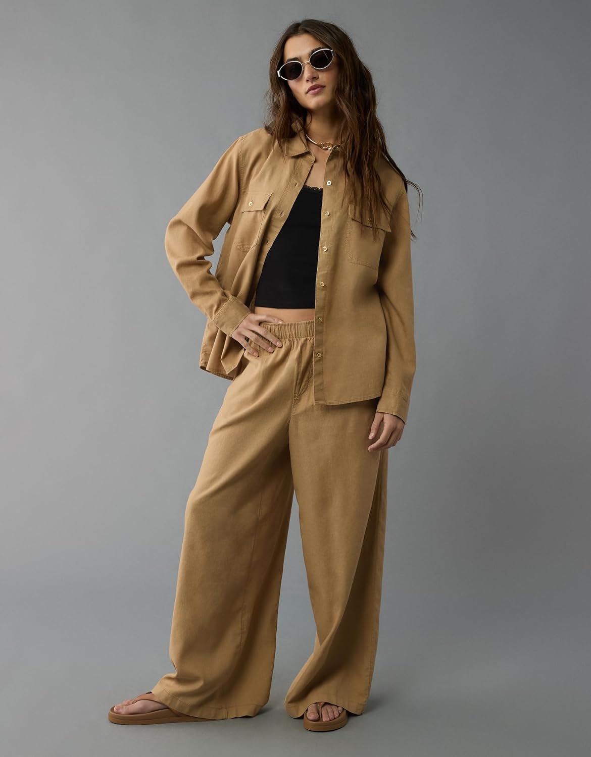 Enjoy your me time in this effortlessly chic button-up shirt, part of an easy, breezy mathcing set.