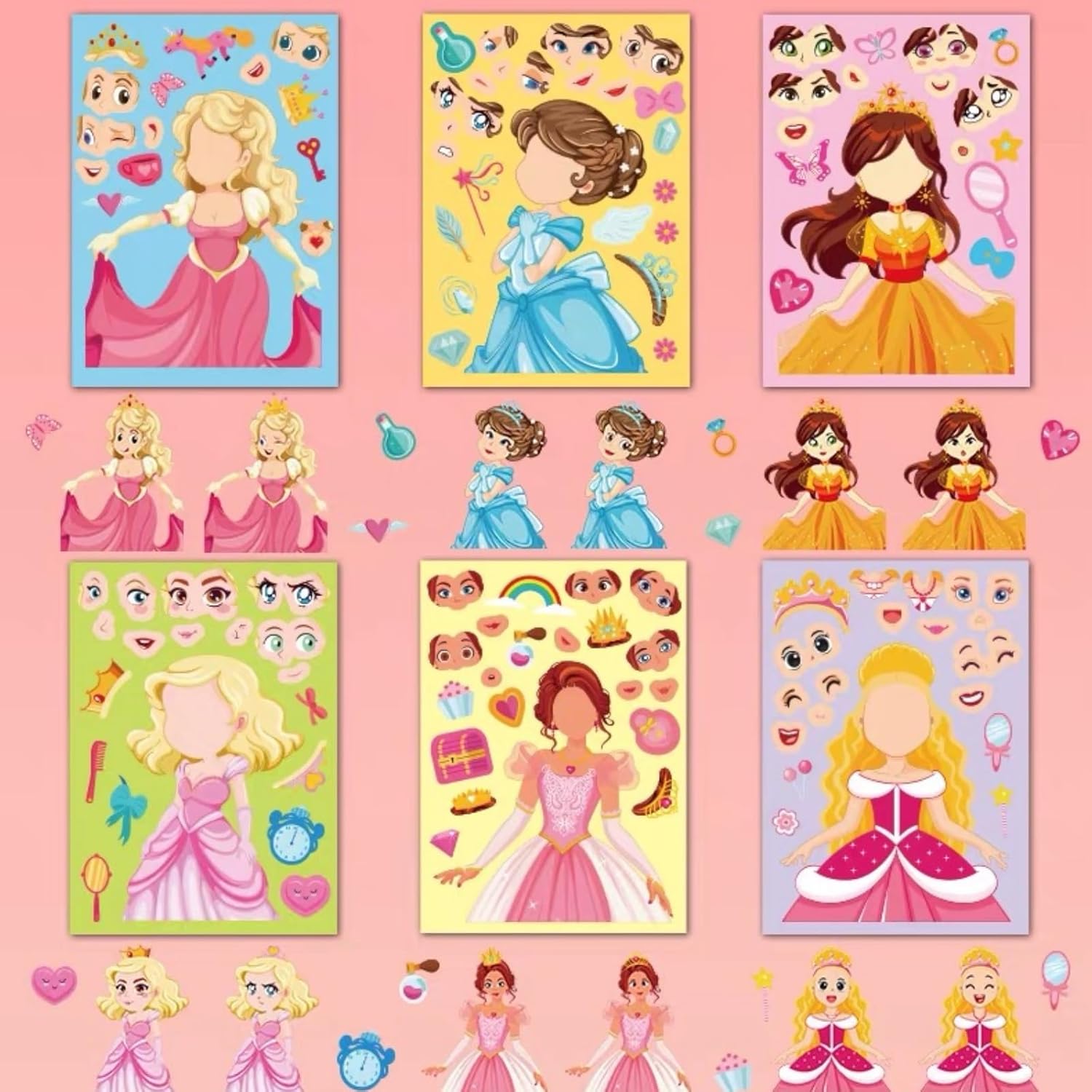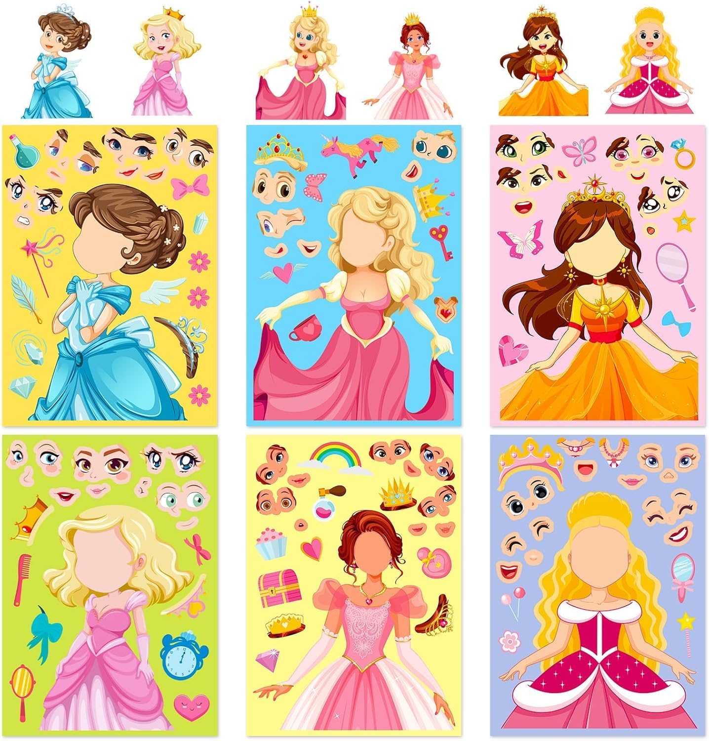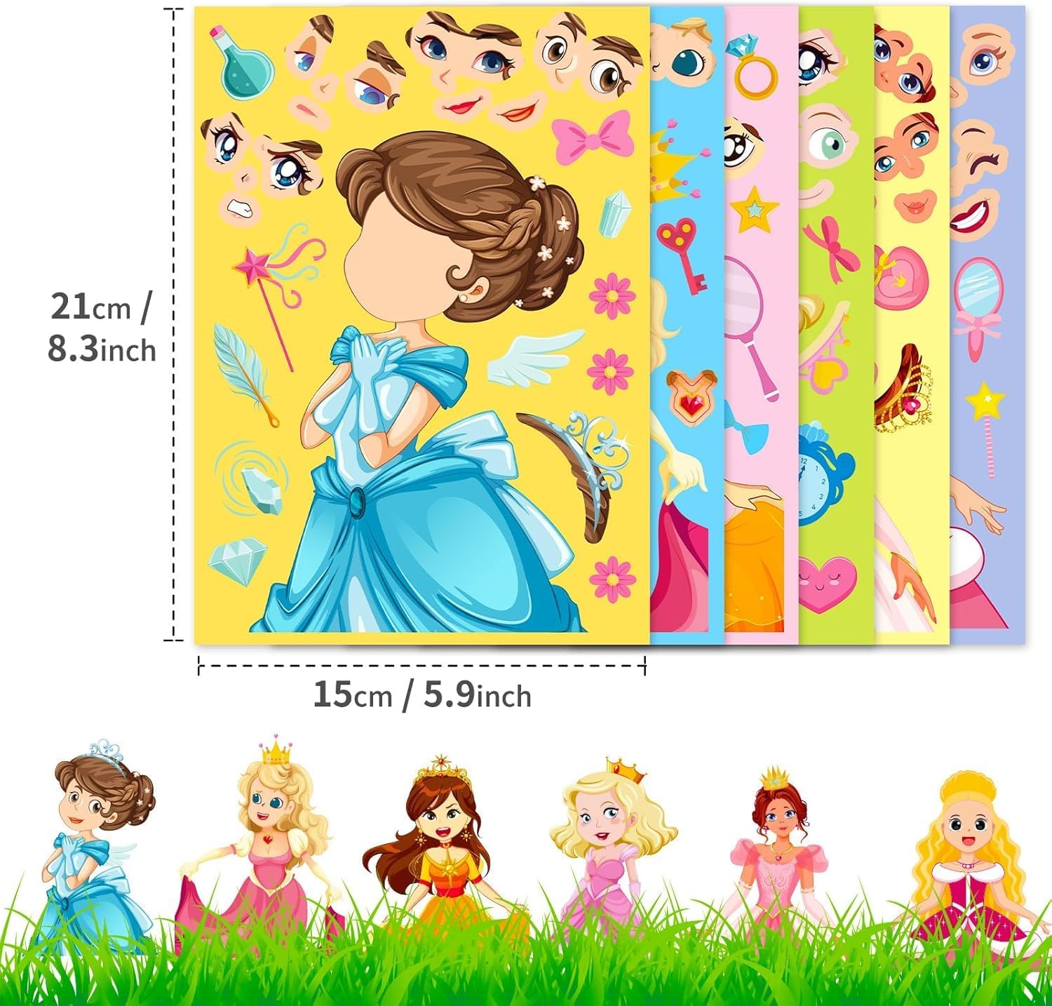 Make a Face Princess Stickers-24 pieces of princess theme party supplies mix and match decorative stickers, 6 different images of beautiful princesses