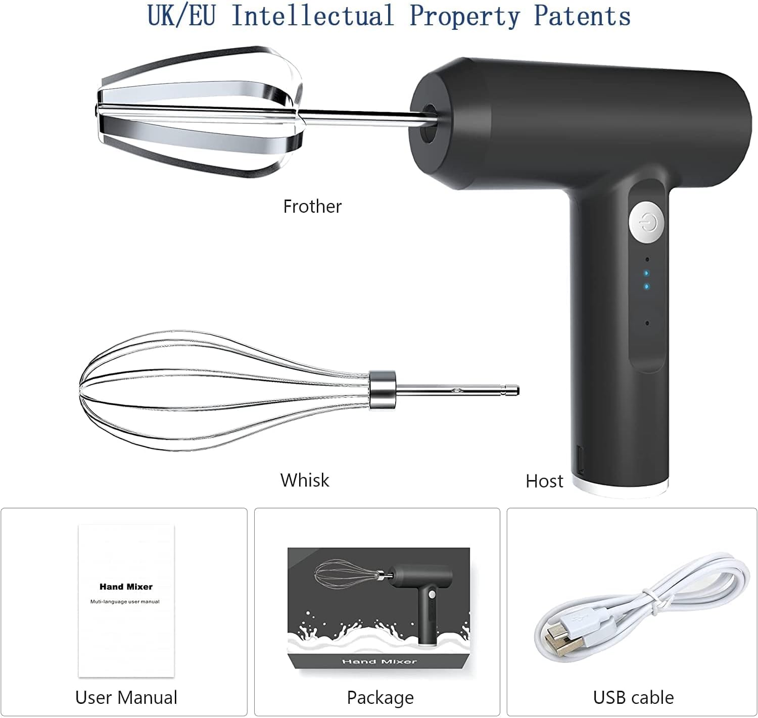 【Cordless and Portable】This new design electric hand mixer is cordless and adopts USB cable charging, so you can get rid of the shackles of sockets and cables when making delicious. cordless hand mxier is portable to take out for picnics, convenient to mix, stir, whip and cream anytime and anywhere.