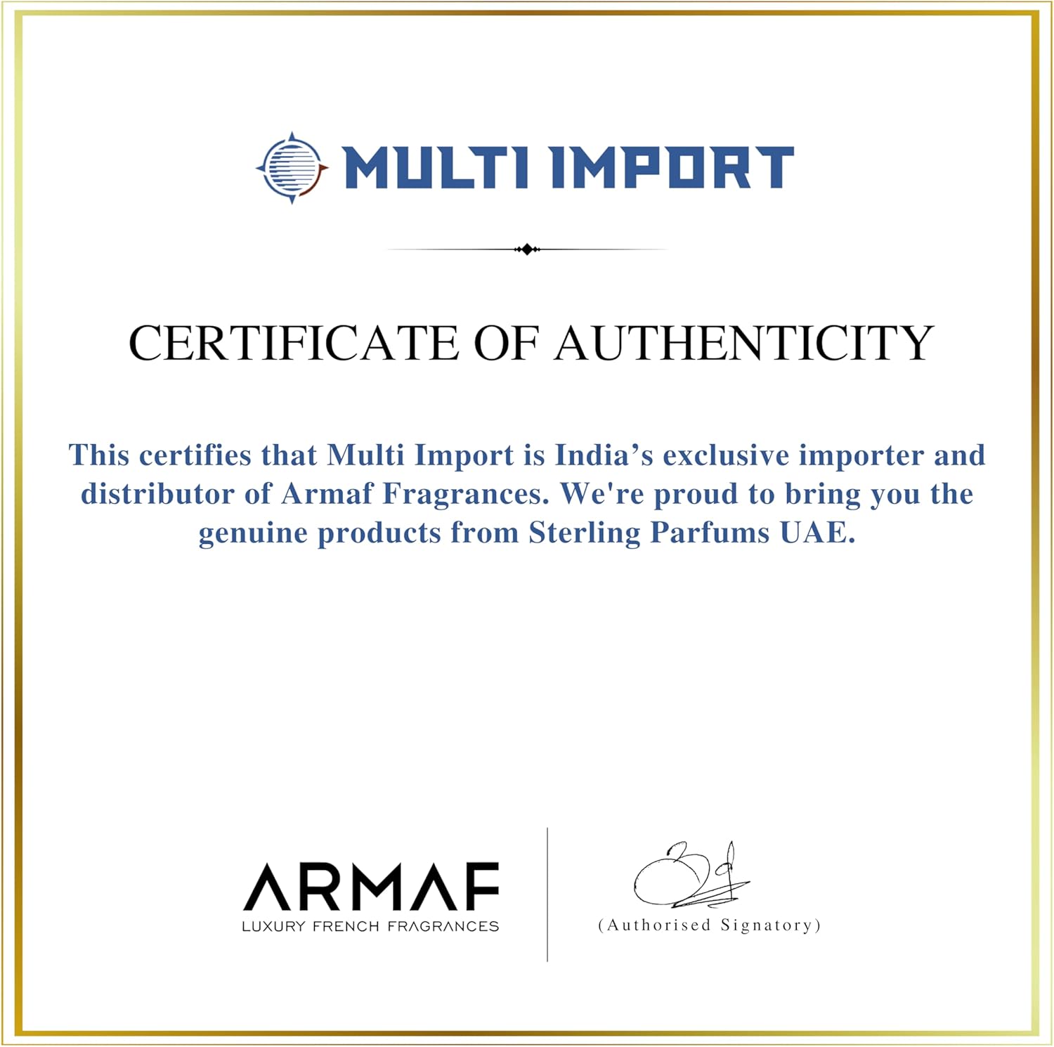 Launched by the design house of Armaf in the year 2015. The chypre floral fragrance has a blend of geranium, saffron, rose, caraway, nutmeg, violet, amber, agarwood (oud), vanilla, and patchouli. Fragrances are fragrant and all-day hold.