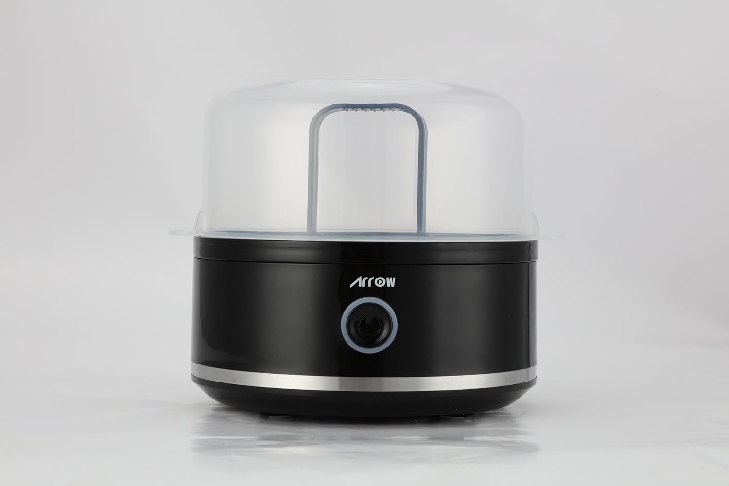 Model Name- RO-07EBD Plastic part black color AC 220-240V 50-60Hz 400W Detachable egg rack for 1 to 7 eggs For soft, half-boiled, or hard-boiled eggs Heat resistant transparent lid Buzzing sound at end of cooking time Stainless steel cooking bowl Boiling-dry safety On/off switch with indication light Including measuring cup with egg piercer Easy to clean