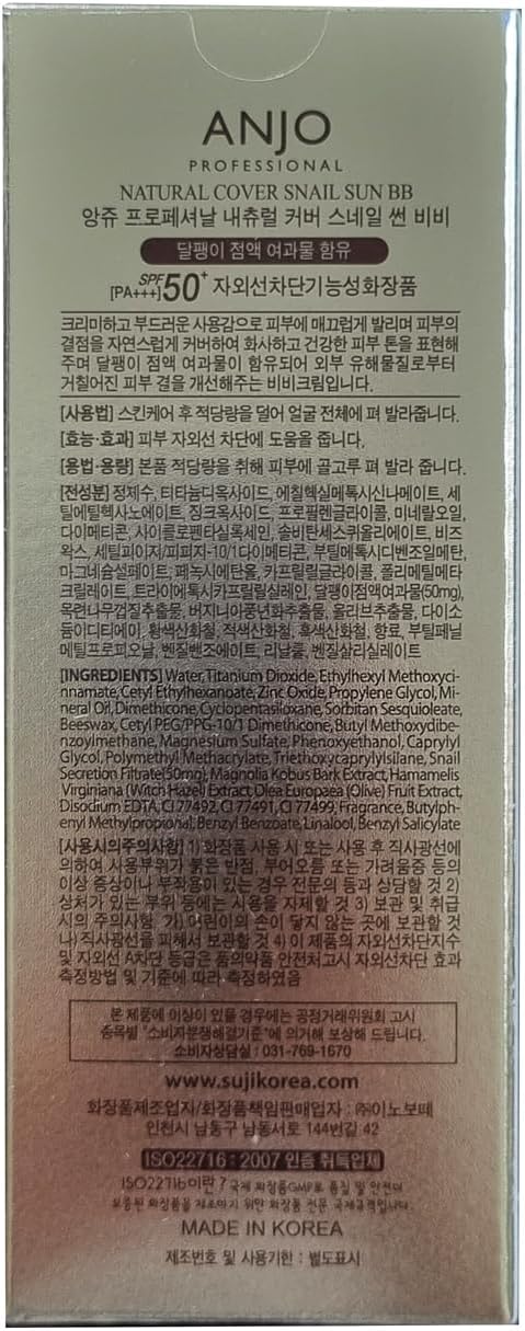 [ANJO] Natural Cover Snail Sun BB Cream SPF 50+PA+++ 50ml X 1EA / Makeup Base/Snail Mucus/Korean Cosmetics