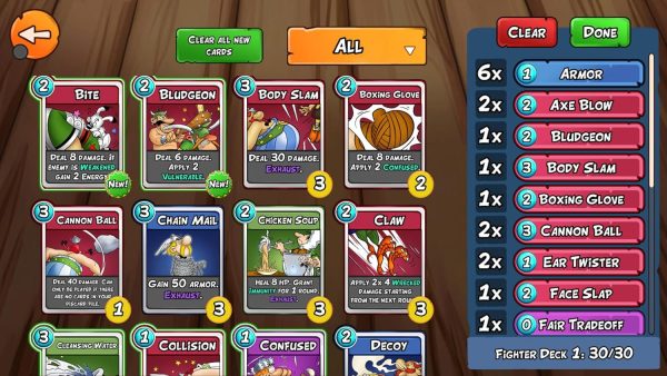 حارب باستخدام البطاقات وقم بترقية أبطالك وأضفها إلى مجموعتك أثناء المغامرة. كل بطاقة لها خصائص محددة، من إلحاق أضرار جسيمة مع منهير إلى شفاء بطل بواحدة من جرعات جيتافيكس! الأمر متروك لك للتكيف مع كل جولة، واتخاذ الخيارات الصحيحة، حتى تتمكن من إحباط خطط الرومان المجانين.