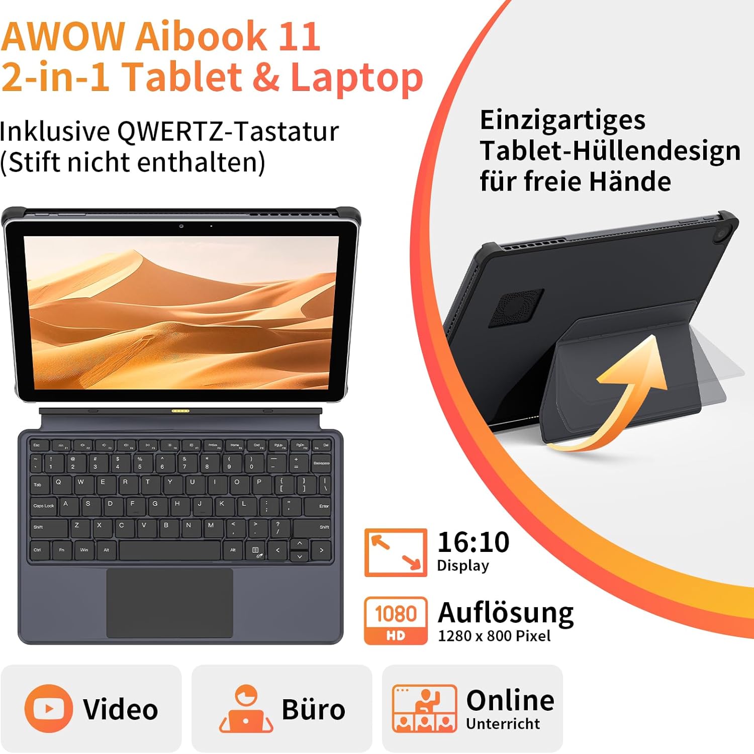 شراء AWOW AIBOOK 11 10.1 Inch 2-in-1 WI-11 Tablet PC with German Keyboard – 12GB LPDDR5 RAM, 256GB PCIE3.0 SSD, Gen12 N100, Touchscreen, Dual-Band WiFi, USB-C, HDMI, 8MP Camera اون لاين من امازون او نون وحراج AWOW AIBOOK 11 10.1 Inch 2-in-1 WI-11 Tablet PC with German Keyboard – 12GB LPDDR5 RAM, 256GB PCIE3.0 SSD, Gen12 N100, Touchscreen, Dual-Band WiFi, USB-C, HDMI, 8MP Camera