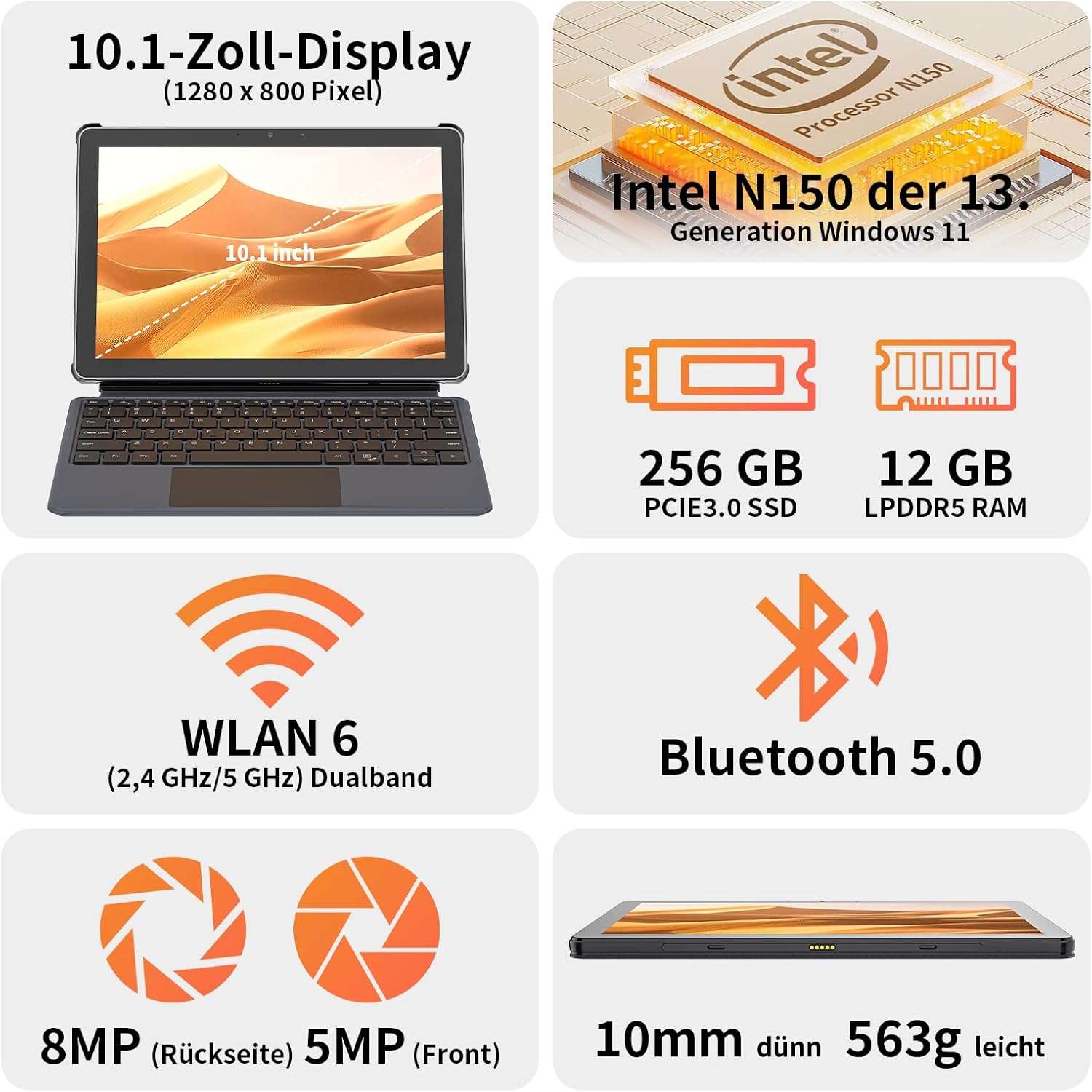 Powerful 2-in-1 tablet with Wi-11 & German keyboard Combines laptop and tablet for maximum flexibility Integrated German keyboard for easy text entry Pre-installed Wi-11 Home for full PC functionality