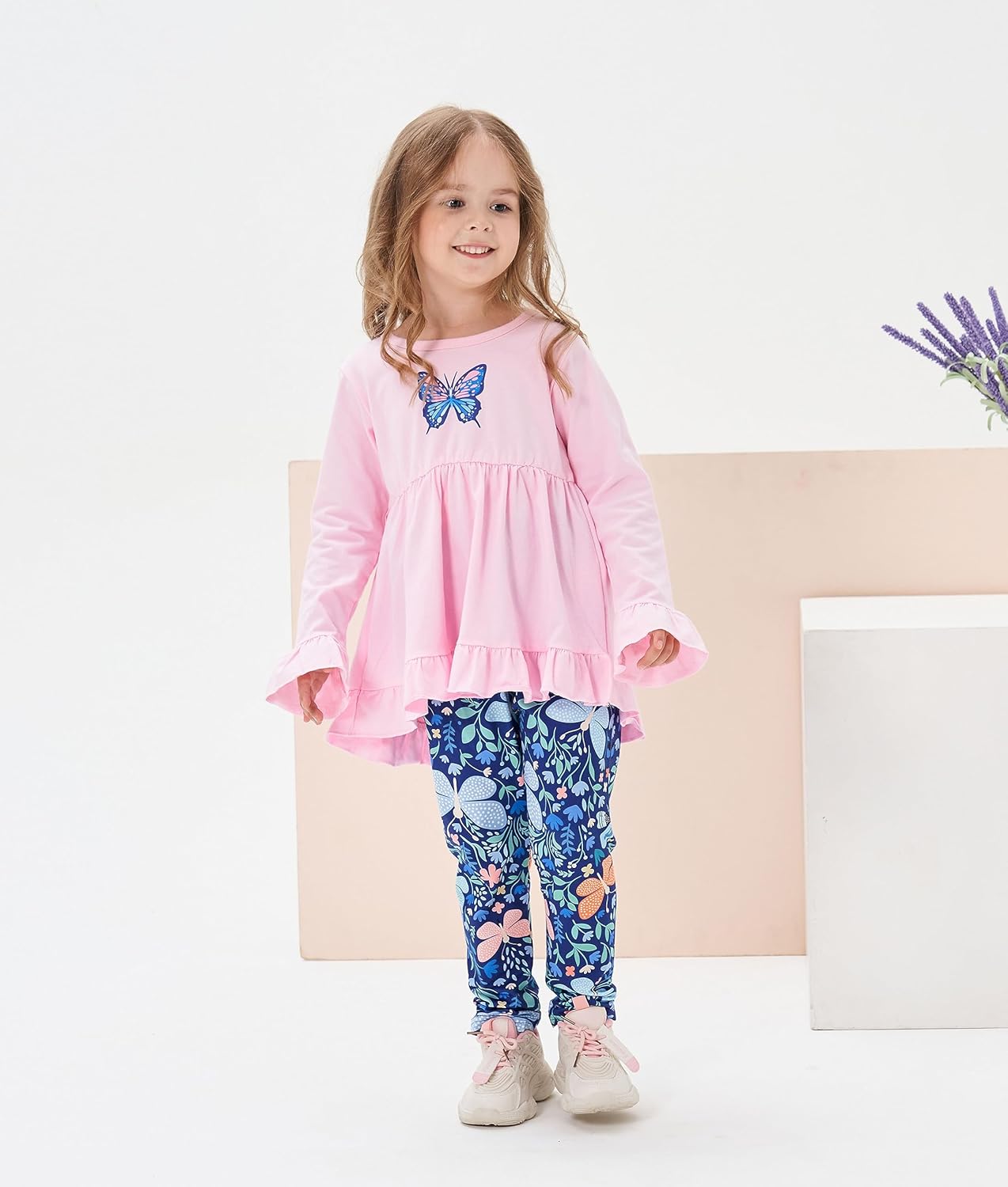2-piece Kid Girl Bowknot Design Ruffled Long Bell sleeves High Low Top and Floral Print Leggings Set