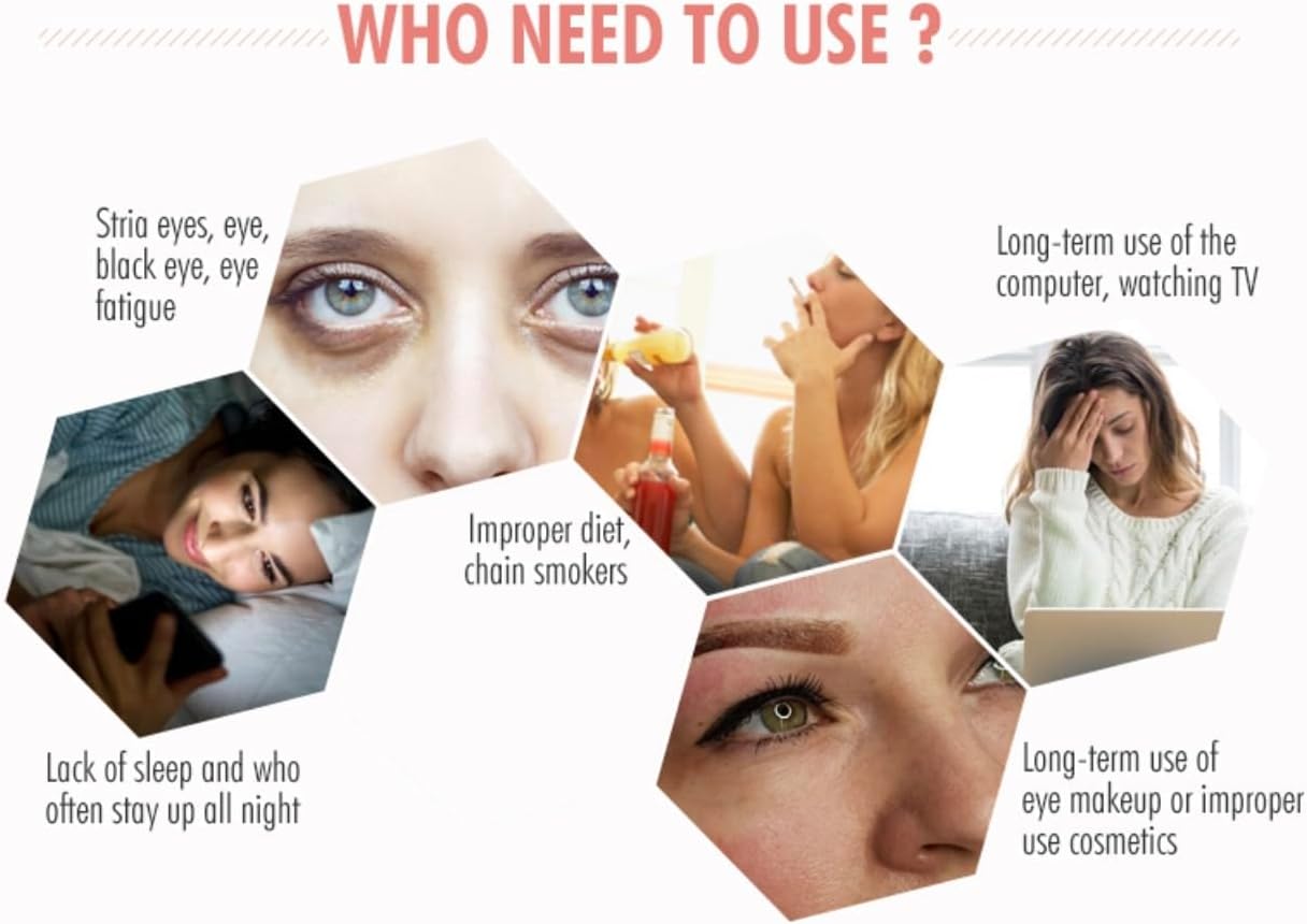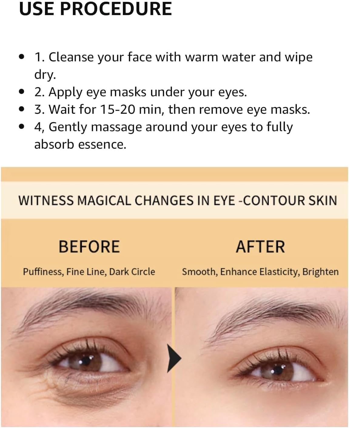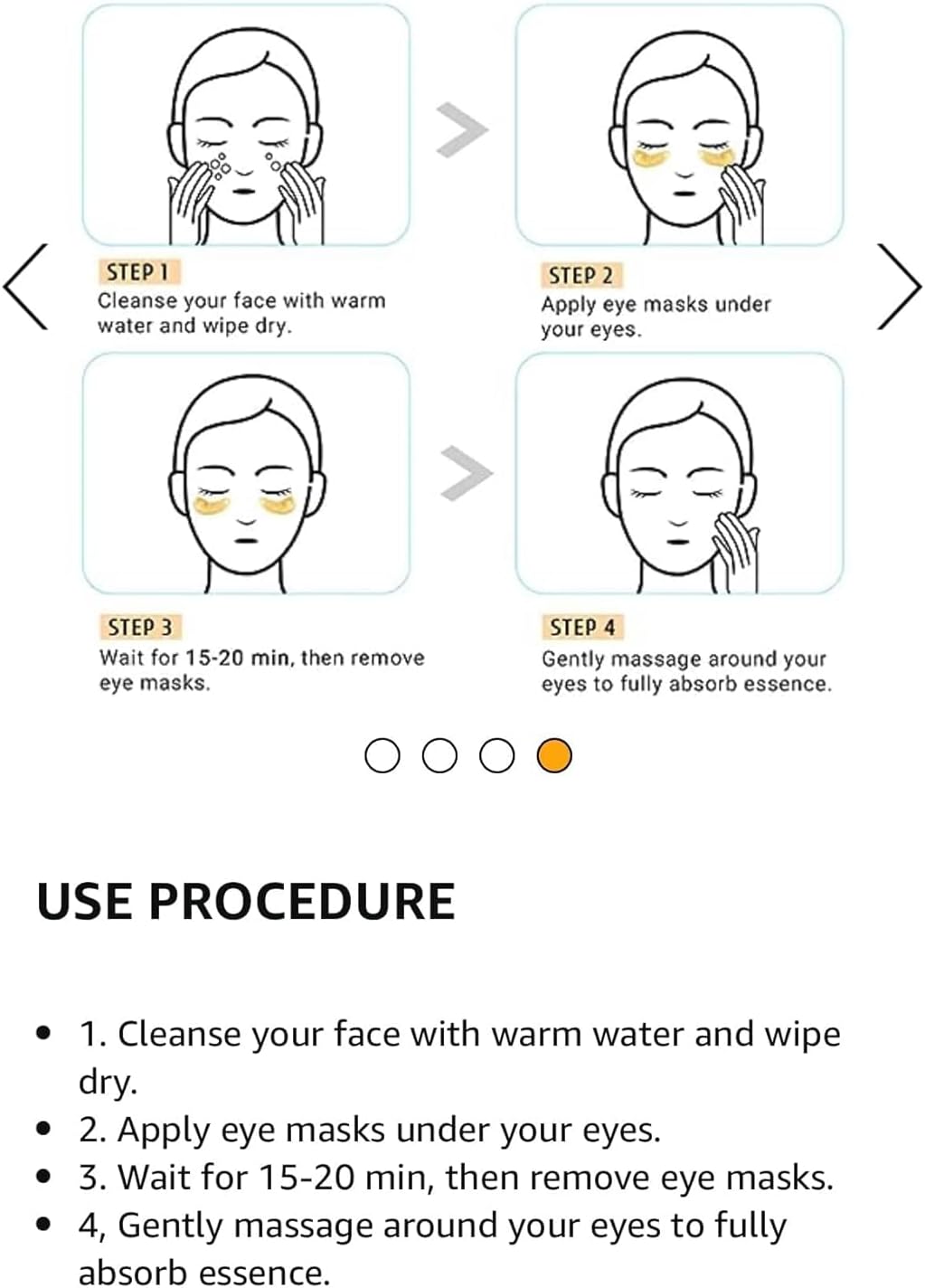 Feature: Convenient Eye Mask Treatment: With these eye masks variety pack you don’t have to worry about making time or setting aside a lofty budget. In just a few minutes, while in the comforts of your home, you can easily DIY your way to a smoothing puffy eyes and reducing dark circles with these undereye gel patches. Luxurious Under Eye Patches for Nourishment: Our collagen hydrogel eye masks provide effective nourishment for the delicate skin under your eyes. These patches act as a lush fortress, soothing, and rejuvenating the thinnest and most sensitive area around your beautiful peepers from within. These eye patches can help erase years from your appearance. Under Eye Patches for Men and Women: Whether you desire a more youthful appearance, wish to move on from the dark circles under your eyes, or reduce puffiness for a special occasion, these masks are an essential addition to your skincare routine. Our eye-shaped hydrogel patches are designed to adhere easily to the skin and effectively target the delicate areas around the eyes for optimal, concentrated care.