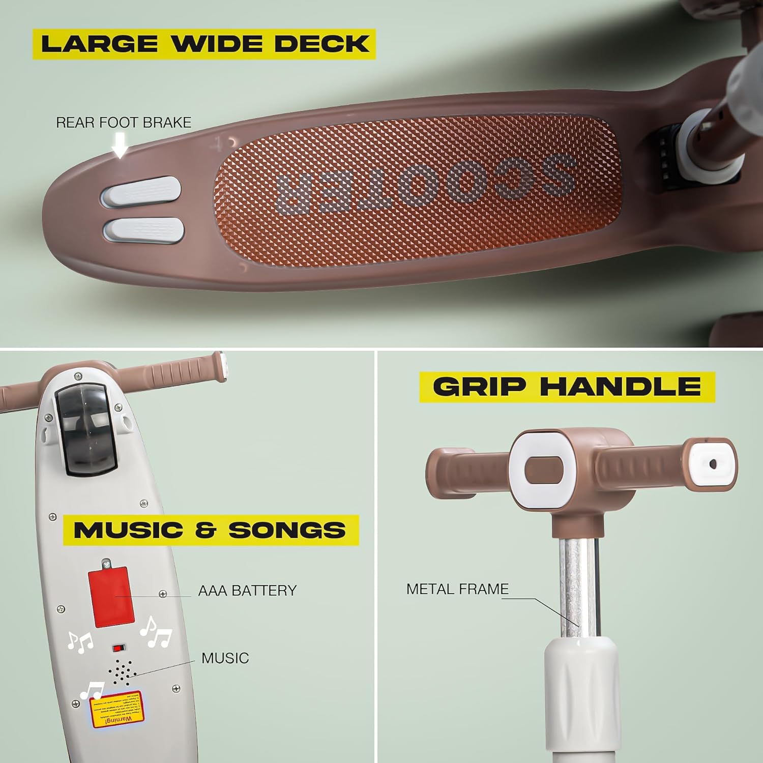 🎵 Built-in Music for Entertainment on the Go : This kick scooter comes with a built-in music system, adding an extra layer of fun during rides. Kids can enjoy their favorite tunes as they zoom around, making this scooter the ideal companion for outdoor adventures.