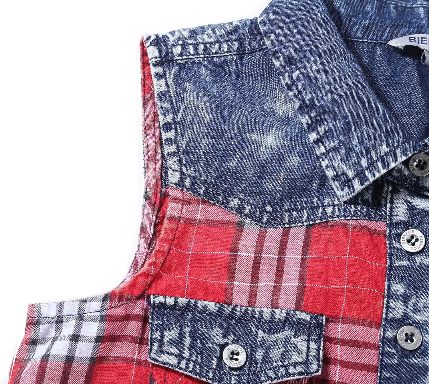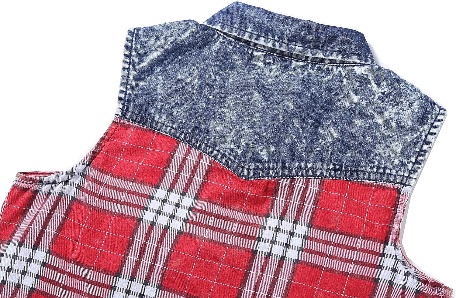 1. Vintage Patchwork Design: This tank top combines different patterns and fabrics, creating a trendy and eye catching look. The plaid and denim accents add a touch of uniqueness to the design.