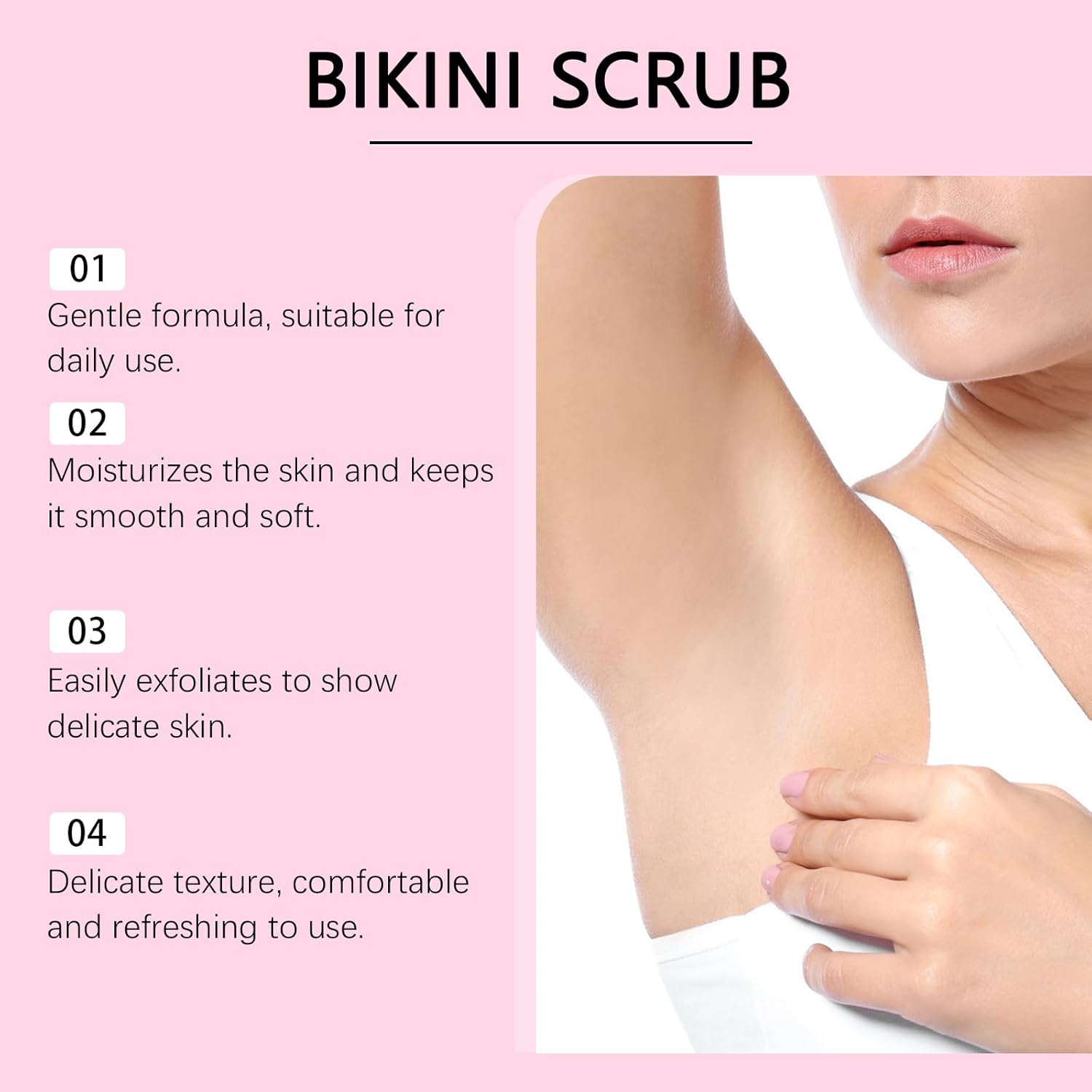 【BIKINI EXFOLIATING SCRUB】Tired of dealing with rough, bumpy skin or pesky ingrown hairs? Bikini Scrub is crafted to pamper your most delicate areas, improve and moisturize skin texture. Become your secret to easily get smooth, glowing skin