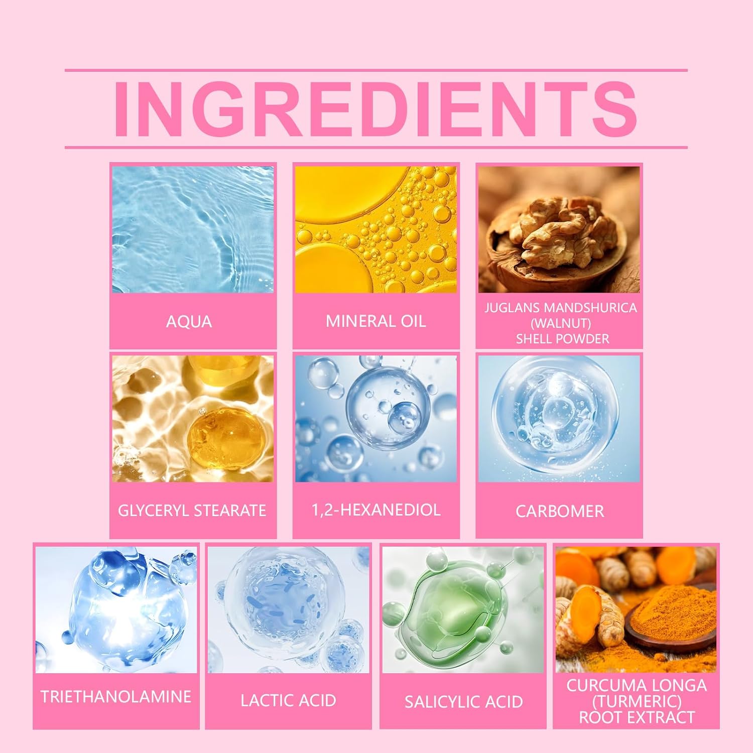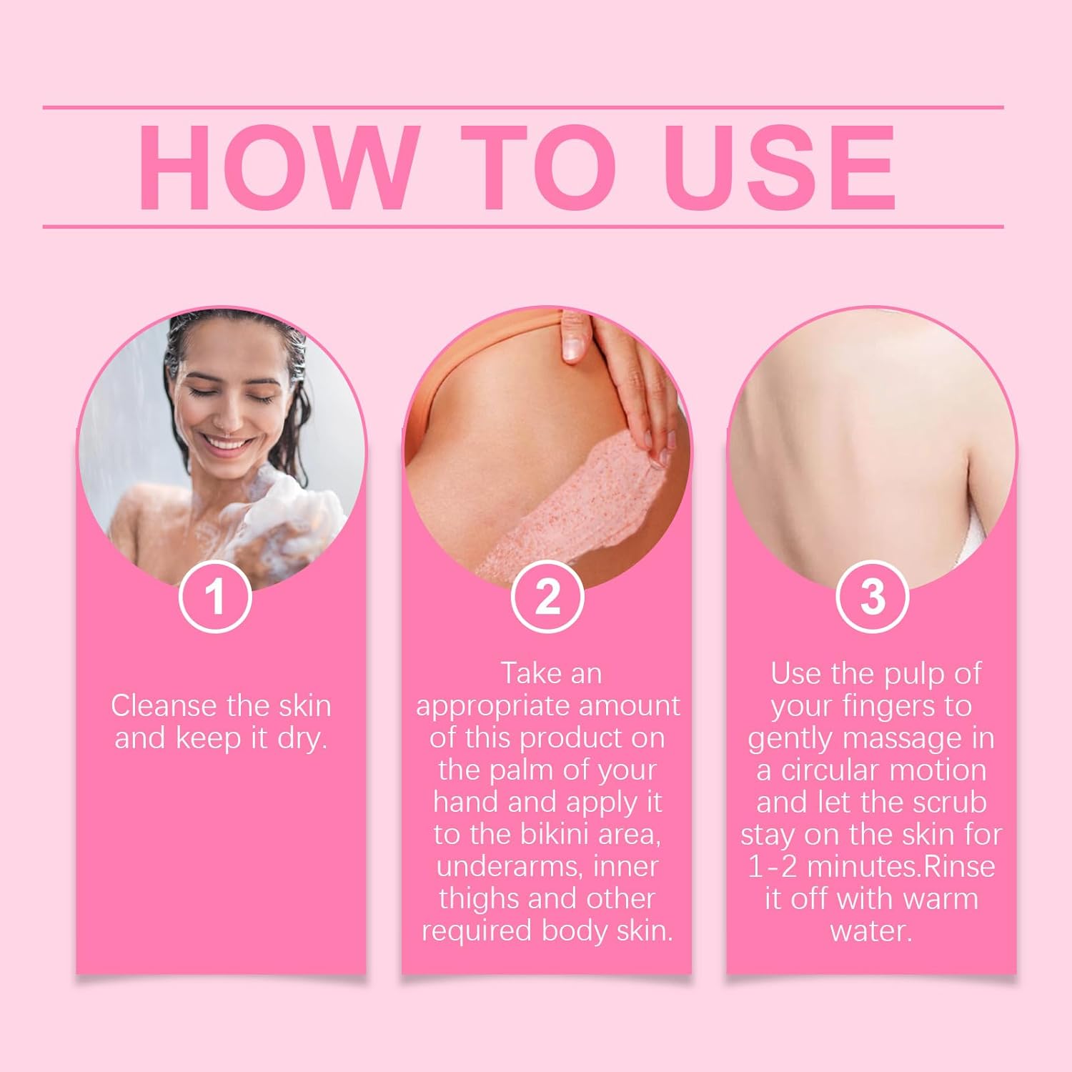 【SAFE & VERSATILE CARE】 Our scrub isn’t just for bikini lines—it’s perfect for multiple areas like inner thighs, underarms, buttocks, elbows, and legs. Formulated with a pH-appropriate balance, it’s vegan, cruelty-free, and free from parabens, phthalates, and PEGs. Use it with confidence, because your skin deserves the best care everywhere