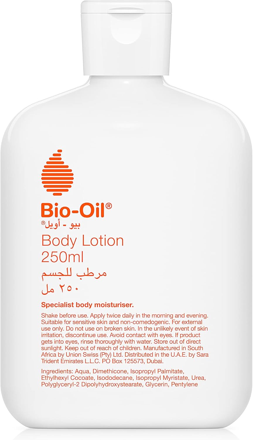 Directions for use: Massage in a circular motion on the body until fully absorbed. It is recommended that Bio-Oil Body Lotion be applied twice daily, morning and evening