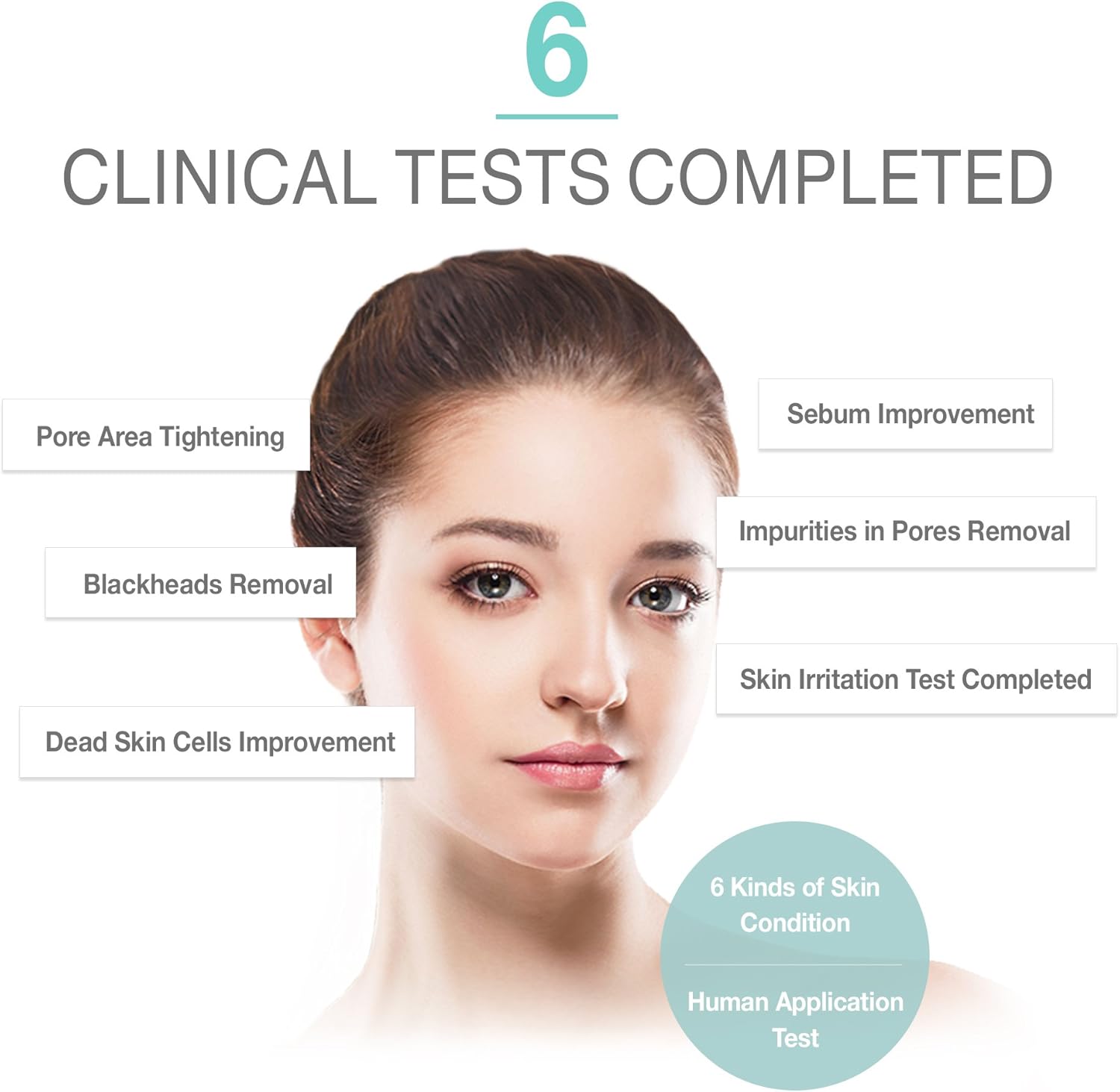 Clinical Tests Completed: 1. Pore Area Testing 2. Sebum Improvement 3. Blackheads Removal 4. Impurities on Pores Removal 5. Dead Skin Callous Improvement 6. Skin Irritation Test Completed.
