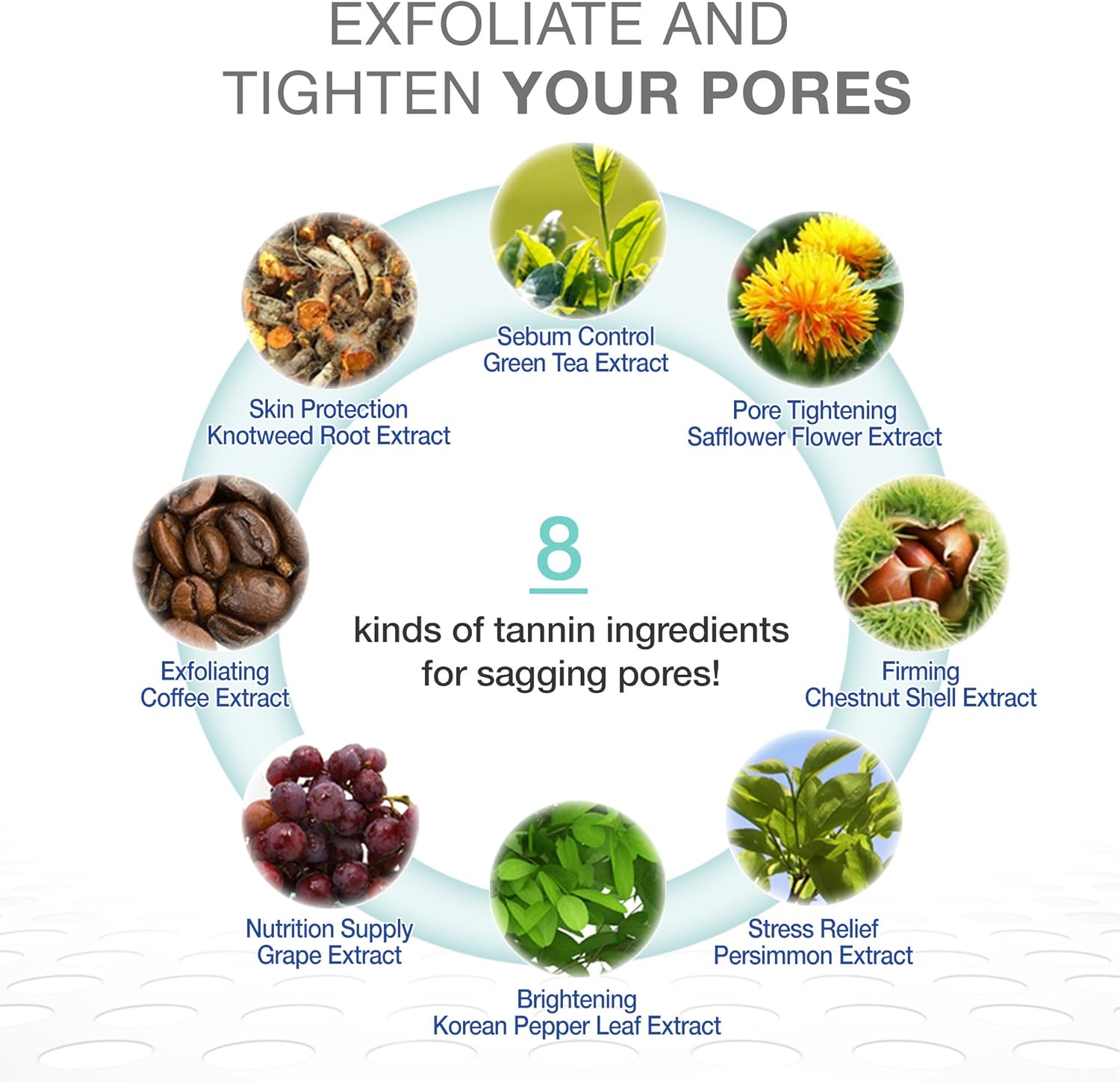 [How to Use] After face wash, apply moderate amount to dry skin and to the spot where pore care is needed. Wash off after genlty massaging for 3-5 minutes. *After opening, please push the button several times to use. [Ingredients] Glycerin, Dipropylene, Glycol, Volcanic Ash, Polysorbate 60, Butylene Glycol, Caprylhydroxamic, Acid, Boswellia Serrata Resin Extract, Propanediol, Volcanic Ash Extract, Sea, Water, Polygonum Multiflorum Root Extract, Ethylhexylglycerin, Citrus, Aurantium Bergamia (Bergamot) Fruit Oil, 1,2-Hexanediol, Diospyros Kaki, Leaf Extract, Vitis Vinifera (Grape) Fruit Extract, Acrylates/C10-30 Alkyl Acrylate, Crosspolymer, Coffea Arabica (Coffee) Seed Extract, Carthamus Tinctorius, (Safflower) Flower Extract, Polygonum Cuspidatum Root Extract, Camellia, Sinensis Leaf Extract, Castanea Crenata (Chestnut) Shell Extract, Zanthoxylum schinifolium Leaf Extract, Benzyl Alcohol, Lavandula Angustifolia (Lavender) Water, Salvia, Sclarea (Clary) Extract, Centaurea, Cyanus Flower Extract, Borago, Officinalis Extract, Chamomilla, Recutita (Matricaria) Flower/Leaf, Extract, Hyacinthus Orientalis Extract, Galloyl Nonapeptide-11, Salicylic Acid. [Caution] Before using the product, please read the instructions for use and precautions Precautions for Use : 1. If you experience red spots, swelling, itchiness or irritations when using the product or when the skin is exposed to direct sunlight after using the product, consult a dermatologist. 2. Do not use on open wounds, eczema or dermatitis. 3. Handling and Storage precautions, 1) Keep out of reach of children. 2) Keep out of direct sunlight.4. Avoid contact with eyes. 5. Do not use the product on children below 3 since it contains the Salicylic Acid and its salt.