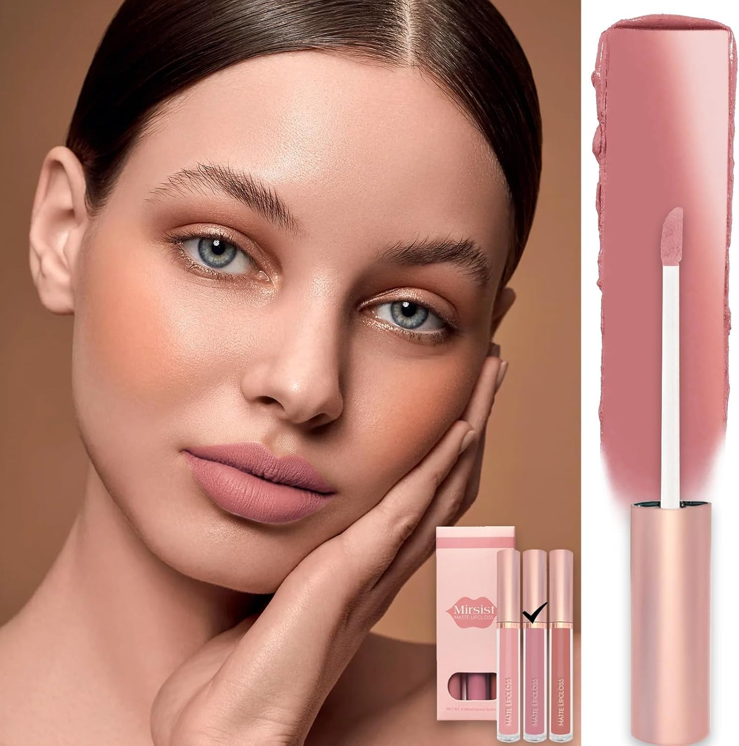【MATTE NUDE LIPSTICK】This lip gloss has a silky texture that is light and smooth, with high pigment saturation, suitable for a variety of skin tones, and it creates a natural makeup look.