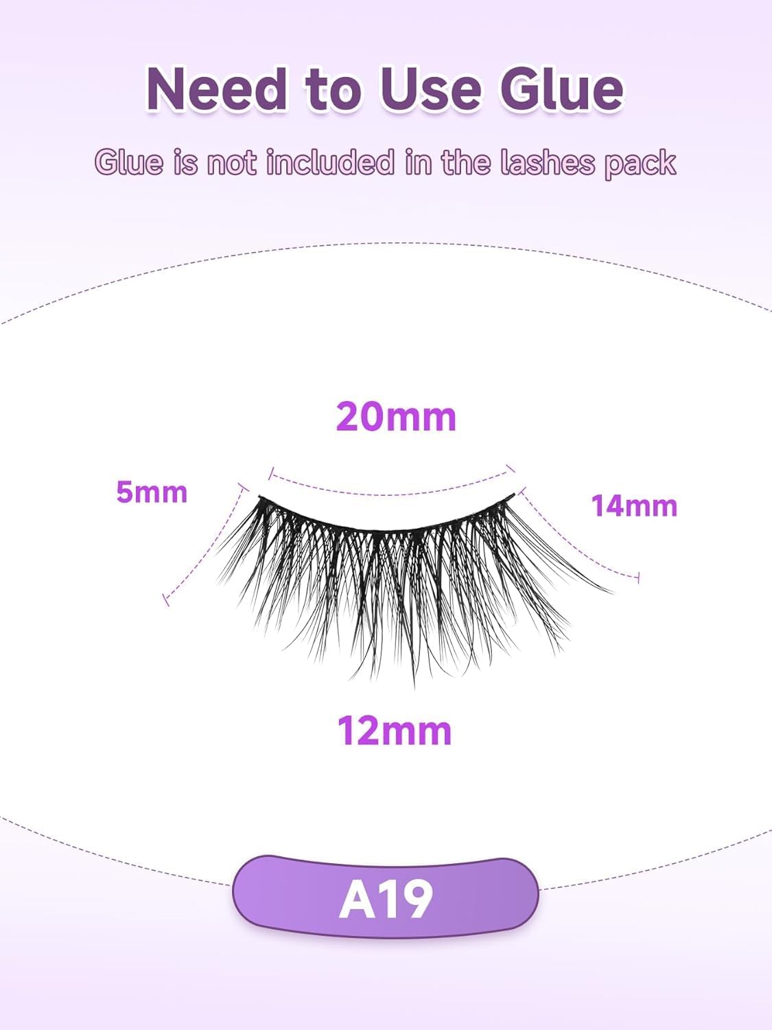 Half Lashes Cat Eye: False lashes length: 5-14 mm, glasses friendly. Wispy Cat eye lashes – Eyes extension and end lifted effect, sexy and charming! C curl natural lashes, adding volume to your eyelashes but keep clean makeup look, small eyes friendly