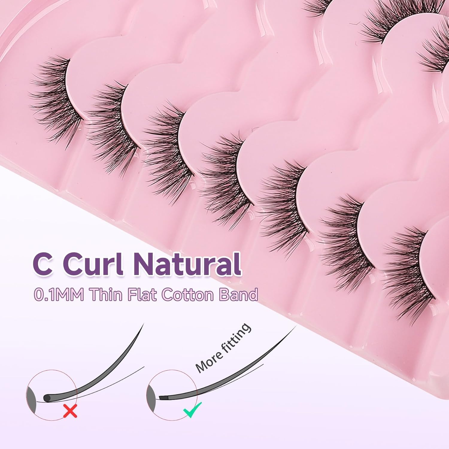 High Quality Strip Eyelashes Wispy: Use superfine synthetic fibers, air feeling and super soft, as your owns lashes, looks natural and stay curling. With double-layered crisscross structure, our false eyelashes are knot-free and won’t fall apart
