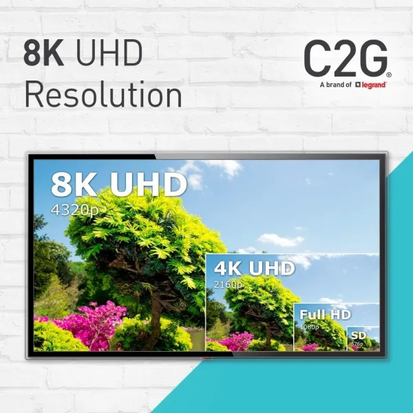 تدعم كابلات اتش دي ام اي فائقة السرعة هذه تجربة عرض غامرة للغاية بدقة تصل إلى 8K، أربعة أضعاف عدد البكسلات التي توفرها 4K. صور متحركة فائقة السرعة من مقاطع الفيديو سريعة الحركة والألعاب وتطبيقات الواقع الافتراضي واضحة وحادة مع قدرة 4 كيه 120 هرتز. كما يتم دعم الدقة الأخرى، بما في ذلك 5 كيه و10 كيه للاستخدامات التجارية والصناعية والتخصصية. يسمح عرض النطاق الترددي 48 جيجابايت في الثانية بدقة أعلى ومعدلات تحديث أسرع وميزات الصوت والوسائط المحسنة.
