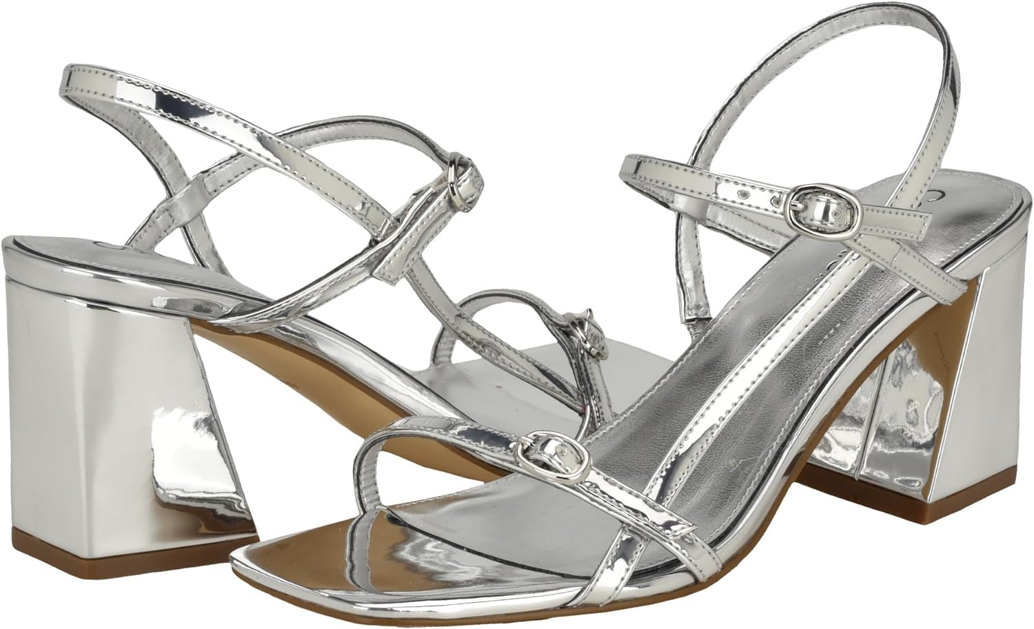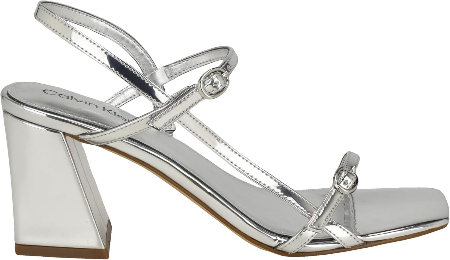 Step out in style the Calvin Klein Linella dress sandal. This sandal features a modern square toe strappy design and high block heel. The Linella dress sandal is the ultimate wardrobe staple!