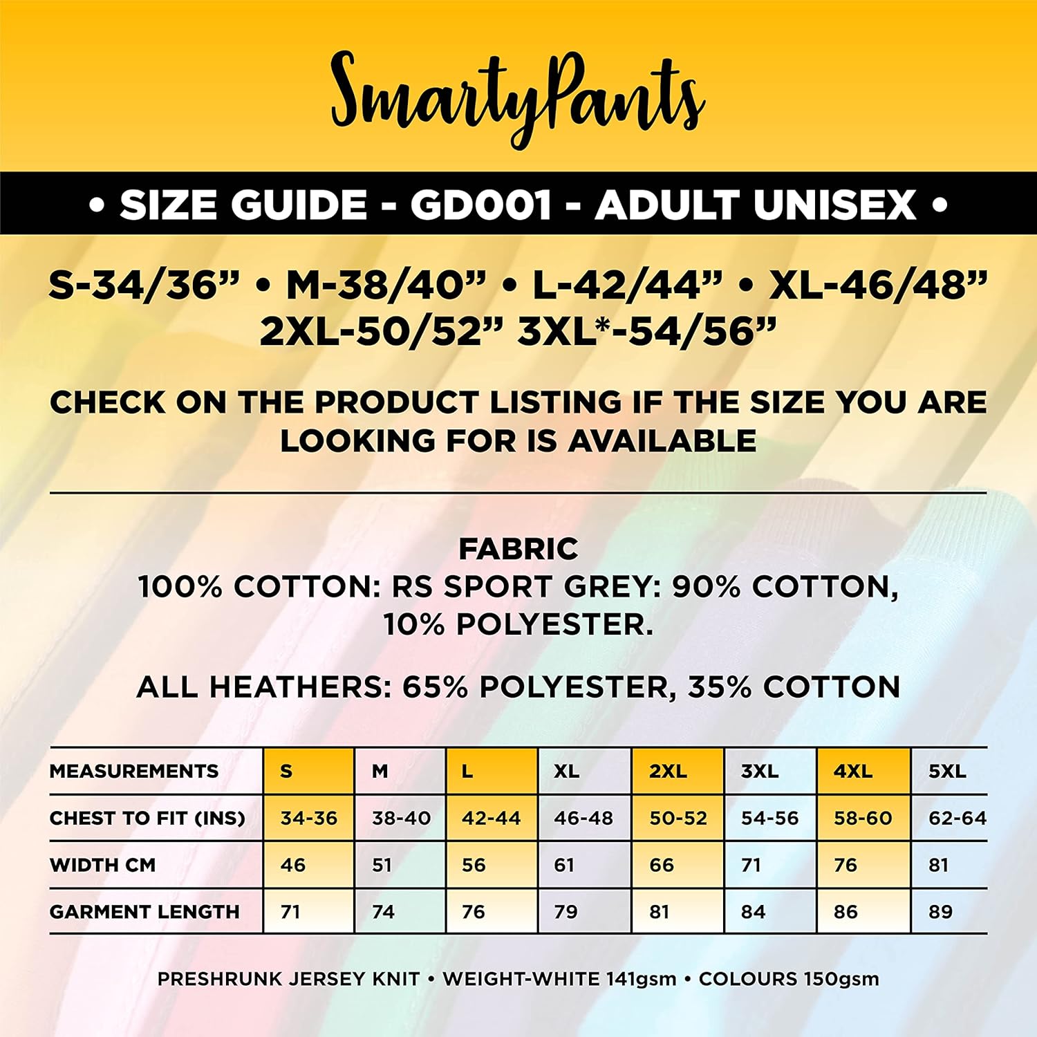 SmartyPants prides ourselves as being one of the UK’s leading printed garment manufacturers which trades via marketplaces in the UK. We use printing methods such as DTG, vinyl, sublimation and heat transfer paper to ensure complete product quality and customer satisfaction. Our state of the art equipment/machines use environmentally friendly ink to promote sustainability and protection to the environment. Don’t worry you don’t have to feel guilty about wearing our garments knowing next to no damage has been caused by the production of your product. Fashion, nostalgia and low affordable prices are our aim so don’t think twice, think right. Most of all we know how easy it is to get caught up in your busy day to day schedule therefore we offer a very generous returns policy. We will accept returns on all purchases 60 days after the arrival date of your order. If you are not completely satisfied with your purchase, we will issue a refund for your return or if you wish to amend the size, we will exchange the return and deliver it again to your delivery address completely free of charge. Measurements (Chest): S 34/36″, M 38/40″, L 42-44″, XL 46/48″, 2XL 50/52″ Wash in a Low Temperature Wash (We recommend 30 Degrees) Don’t tumble dry the shirt. Wash inside out, and also iron inside out. Printed in house at Smartypants ensuring maximum quality and guaranteed satisfaction.