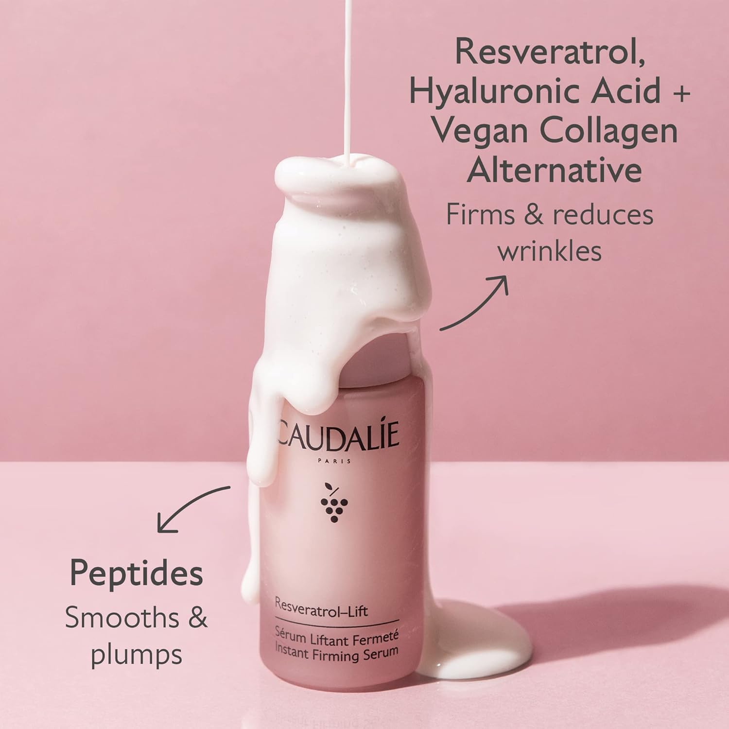 This oil-free serum visibly firms, lifts and reduces the look of wrinkles with patented resveratrol, hyaluronic acid and vegan collagen alternative. This serum is powered by Caudalie’s exclusive patent Resveratrol + hyaluronic acid + vegan collagen alternative, proven to be 2x more effective than retinol to visibly firm skin at the serum concentration. It is a clean and non-irritating retinol alternative. Facial contours look visibly smoothed.