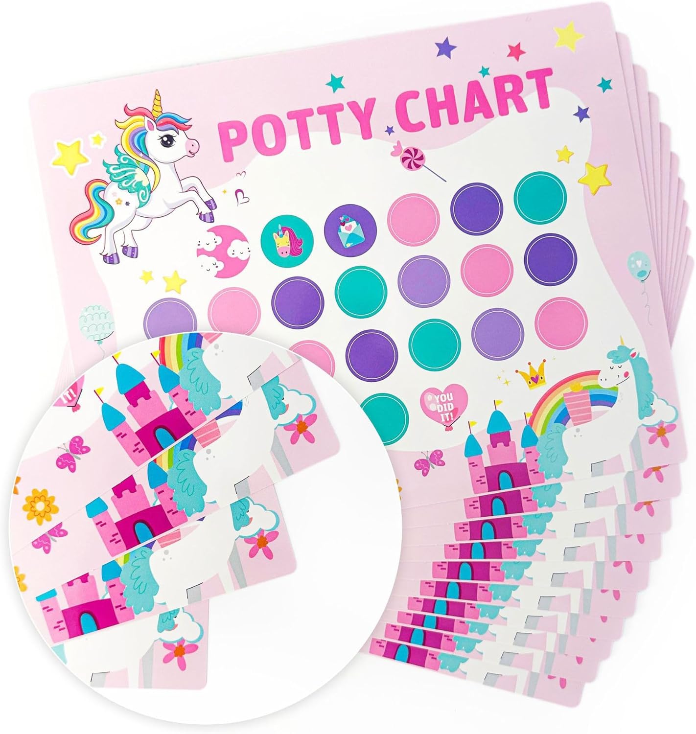 Make Going Potty Fun And Motivating; You’ll receive 10 – 8.5×11″ potty chart posters and 4 – 8.5×11″ potty train sticker chart sheets (63 stickers per sheet); Turn potty time into a game with this potty training chart for toddler girls/potty training sticker chart for toddlers