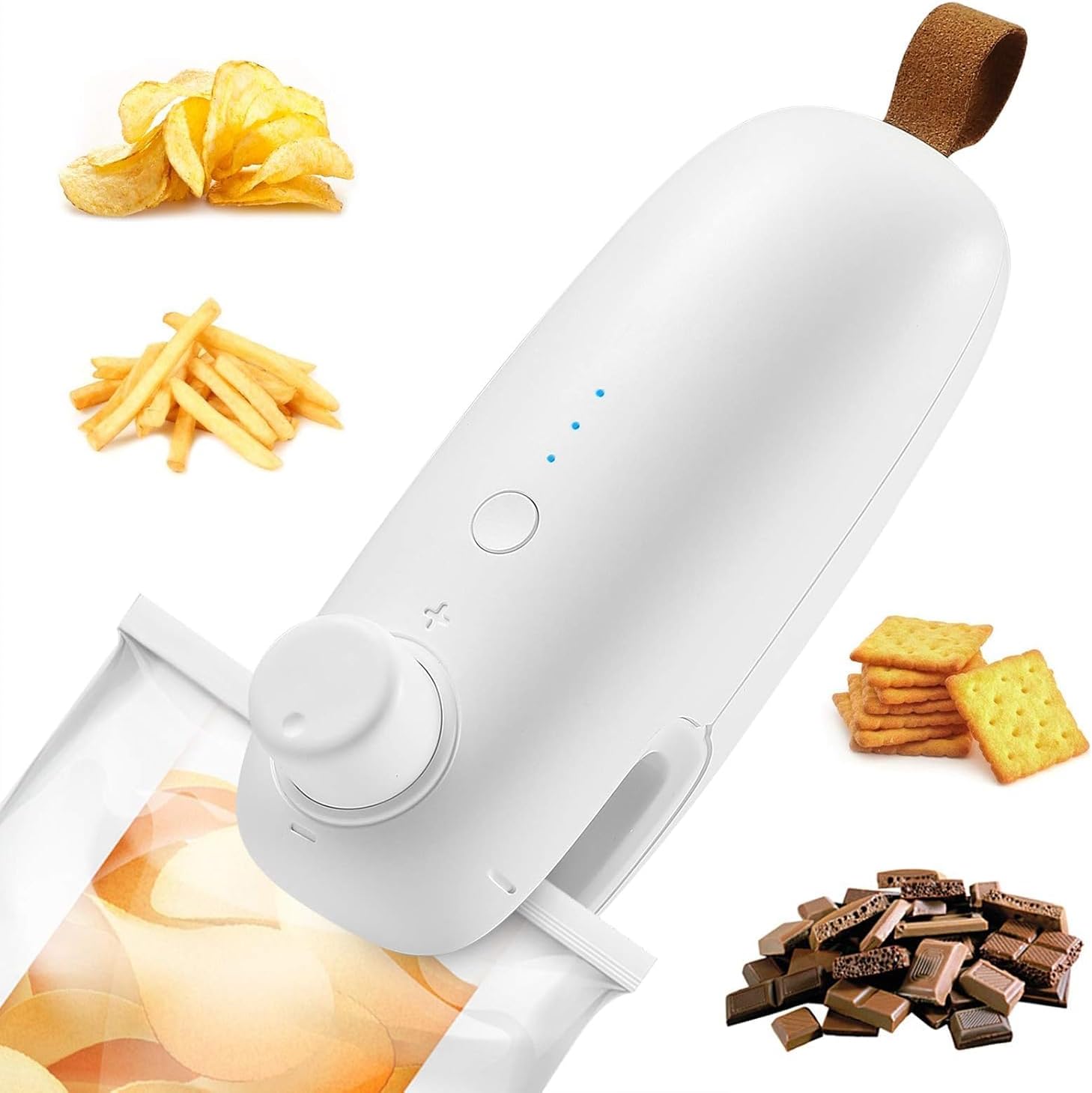 🍟 【Three Sealing Modes in Mini Bag Sealer】—- The compact body has two functions, one side rotates out to open the blade, which is used to open a bag. There are no sharp parts, so it can replace clamps and scissors. The other side is used as a bag sealing machine to keep the snacks fresh for several days. There is also the easy-to-operate three-stage bag selection design.
