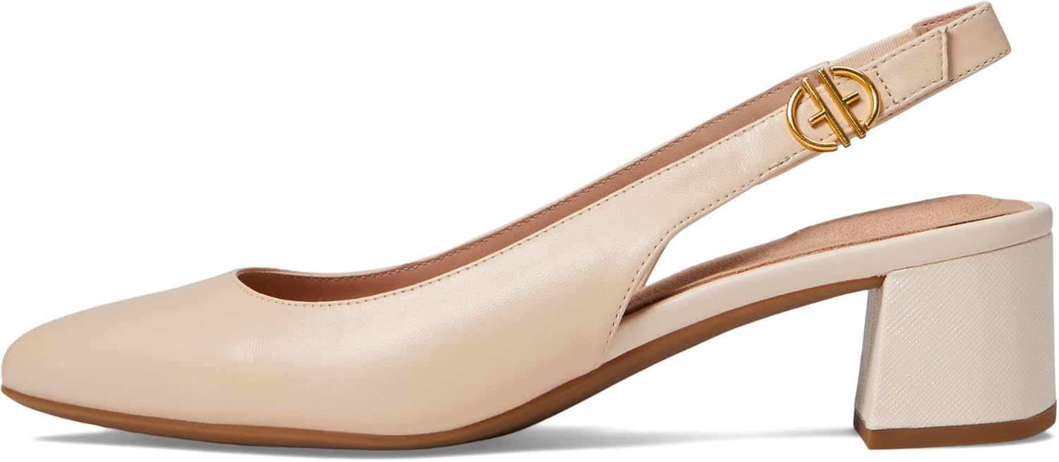 UPPER: Classic slingback silhouette on a block heel. MIDSOLE: Superfoam molded footbed provides extra cushioned footbed and perfect fit. OUTSOLE: Anatomical heel provides a better fit. Rubber outsole for lightweight feel and added grip/traction/flexibility. 45mm heel height.