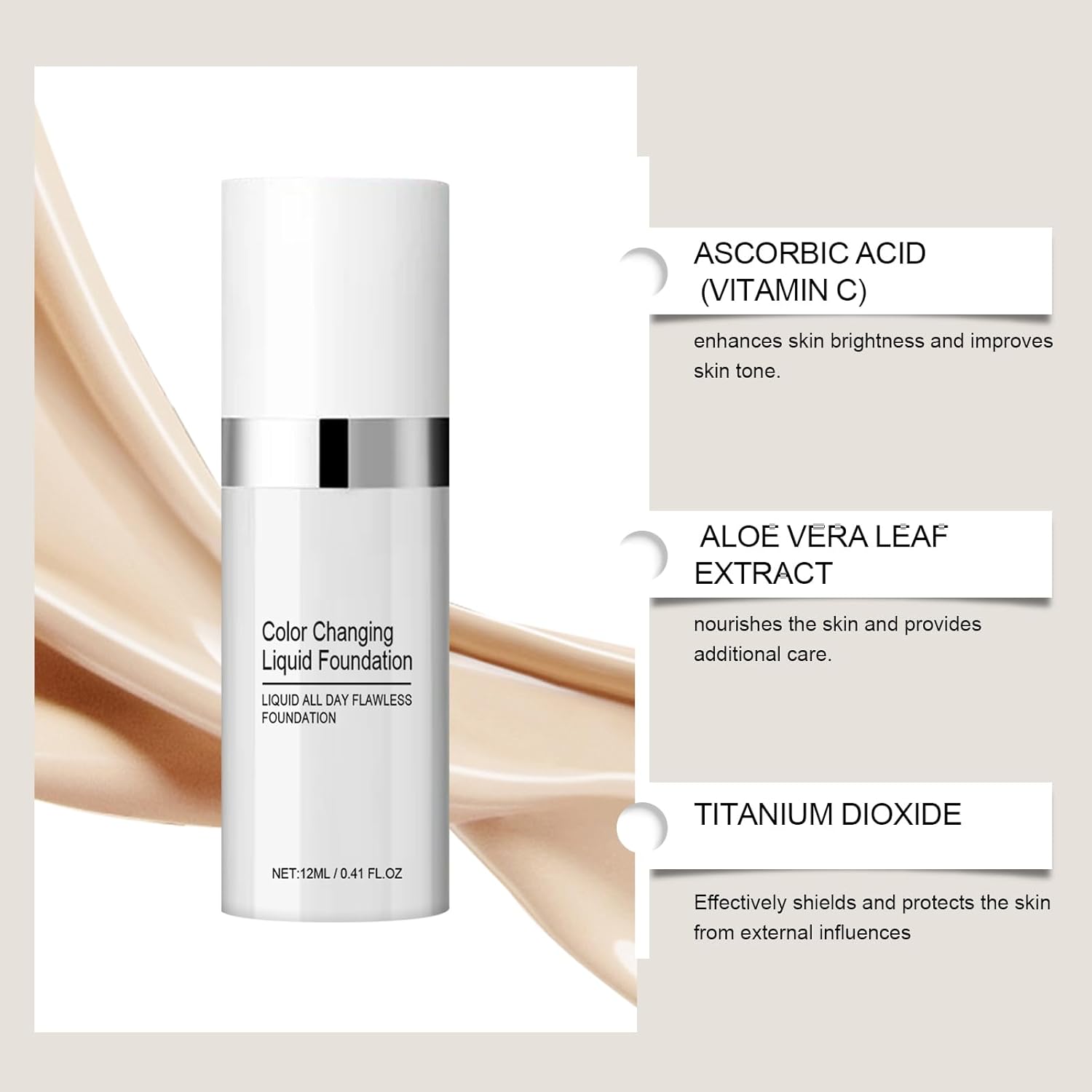 Professional Foundation Brush Included: Designed for flawless application, the included high-quality brush ensures even, streak-free blending, enhancing the color-changing formula’s seamless finish.
