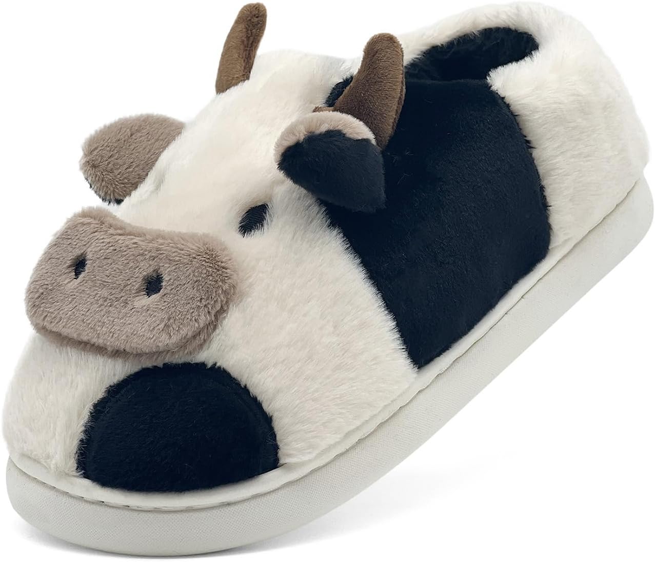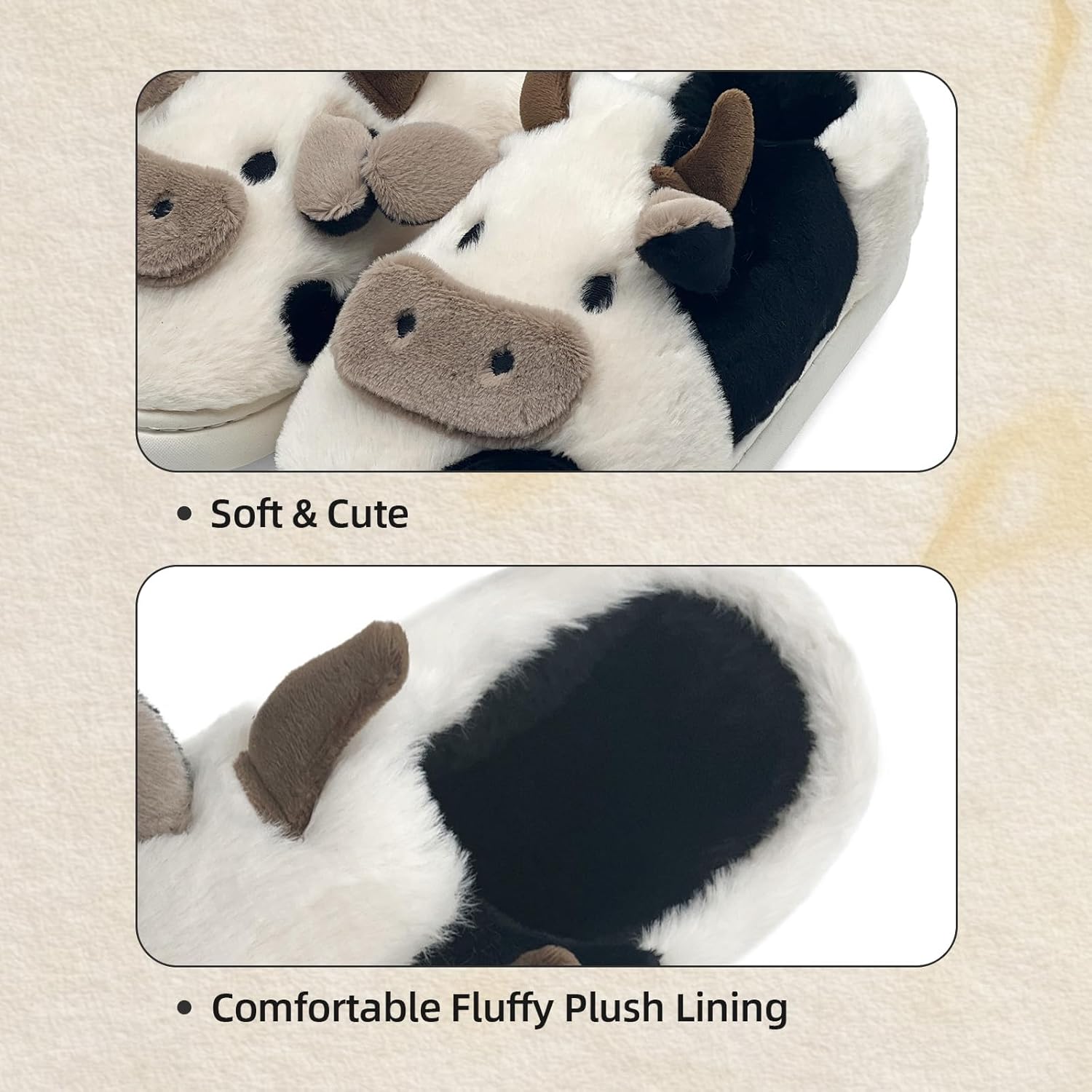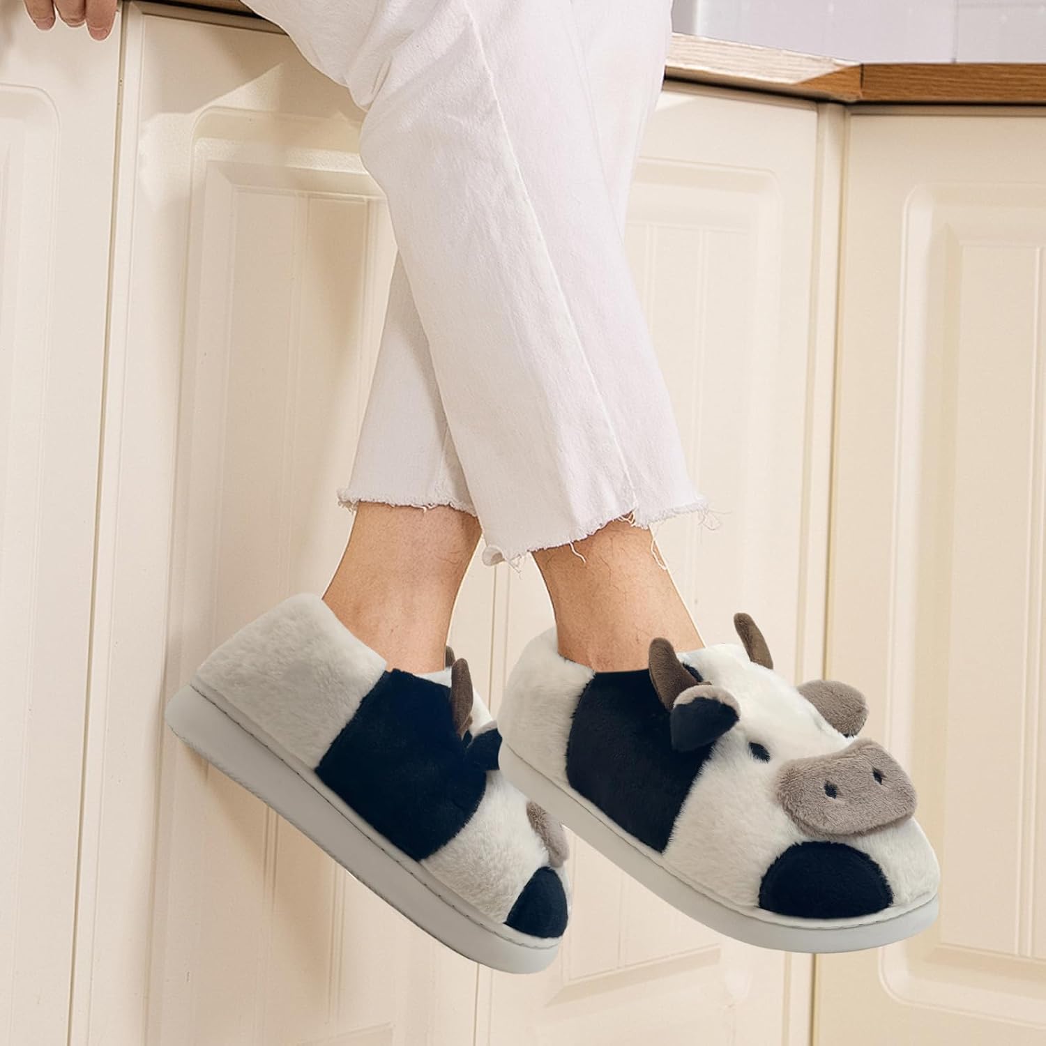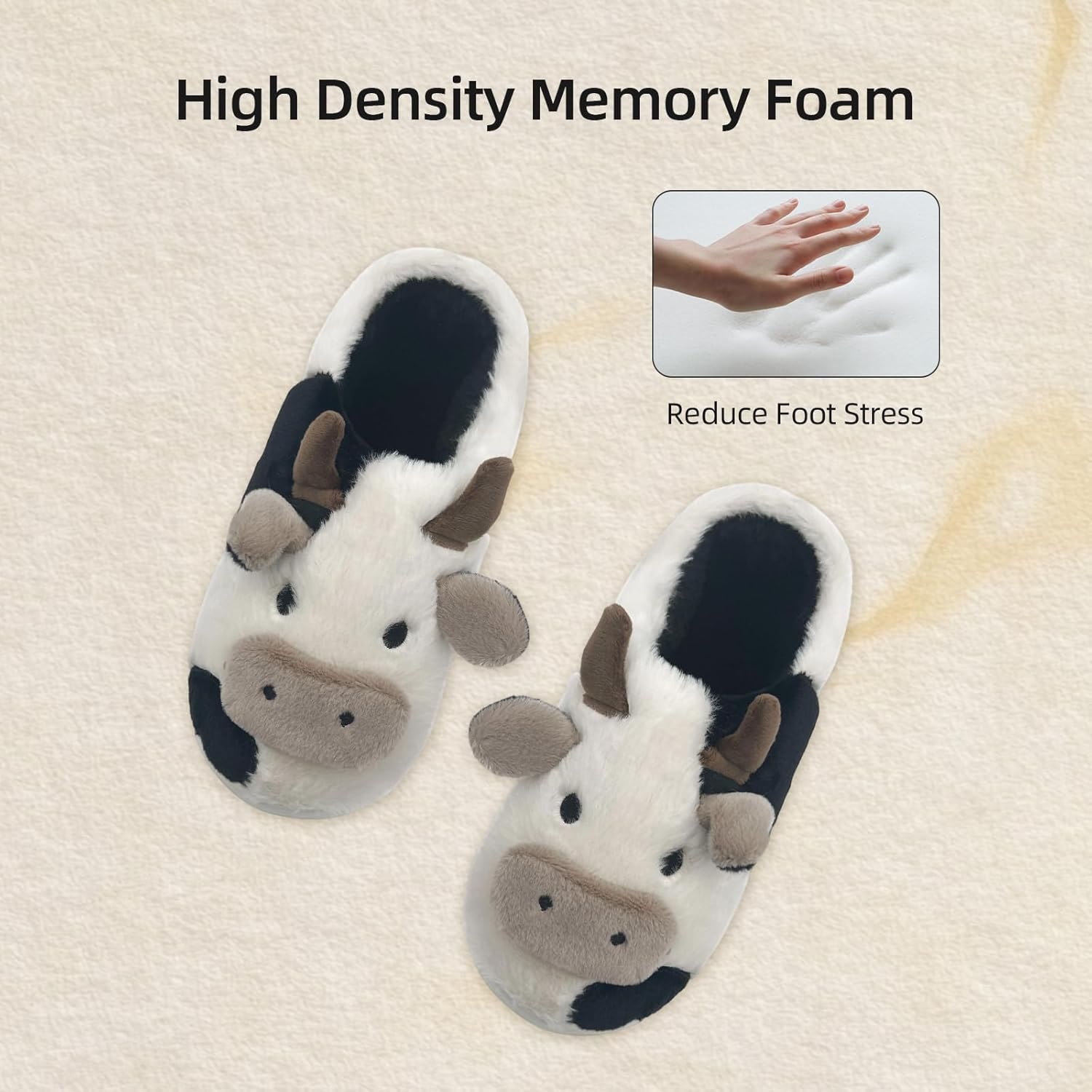 Cow Slippers for Women & Men – Plush Soft Non-Slip Cute Cows House Slipper, Winter Warm Fuzzy Shoes with Comfort Memory Foam