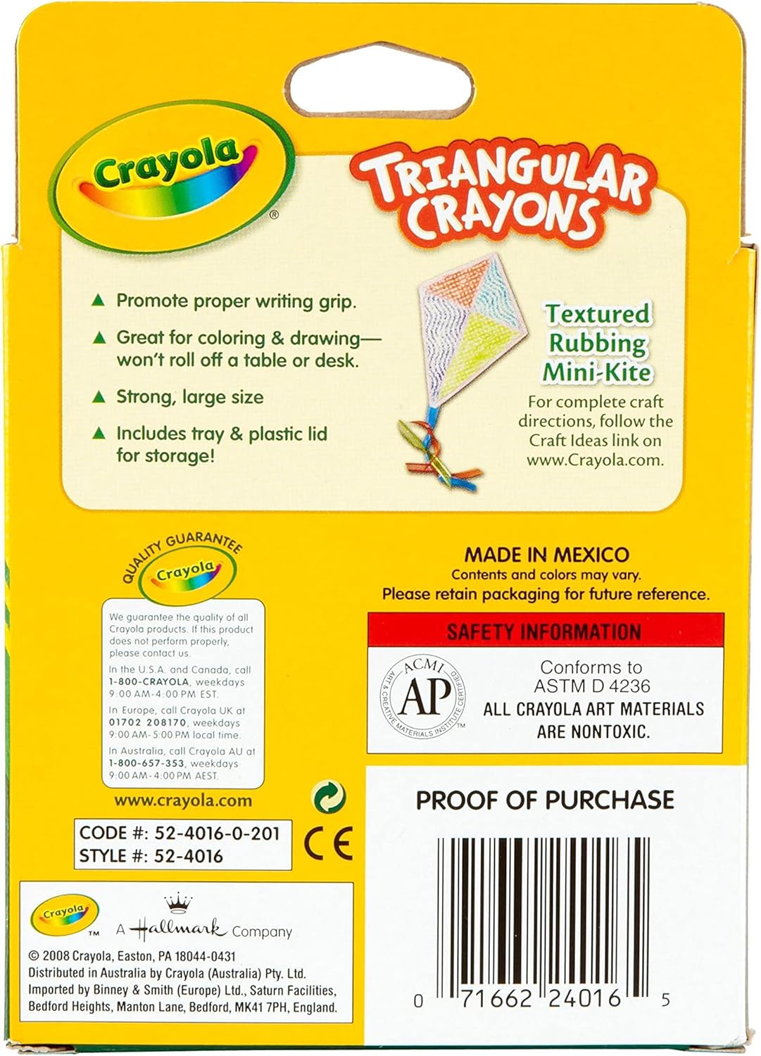 KID-FRIENDLY SHAPE: These anti-roll Crayola Triangular Crayons help to promote proper writing grip when kids are learning to form letters and color pictures.