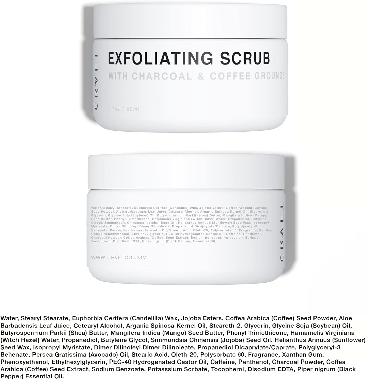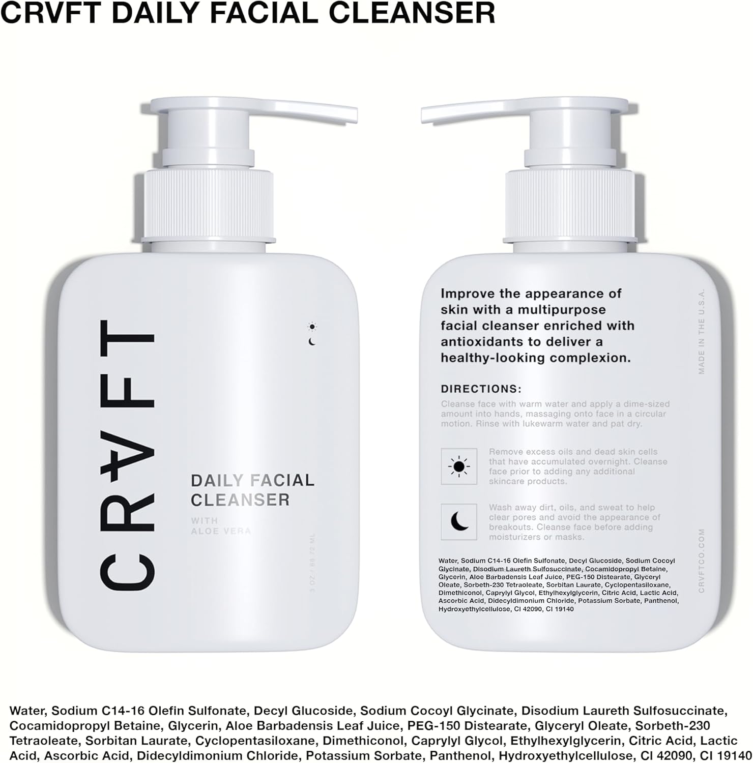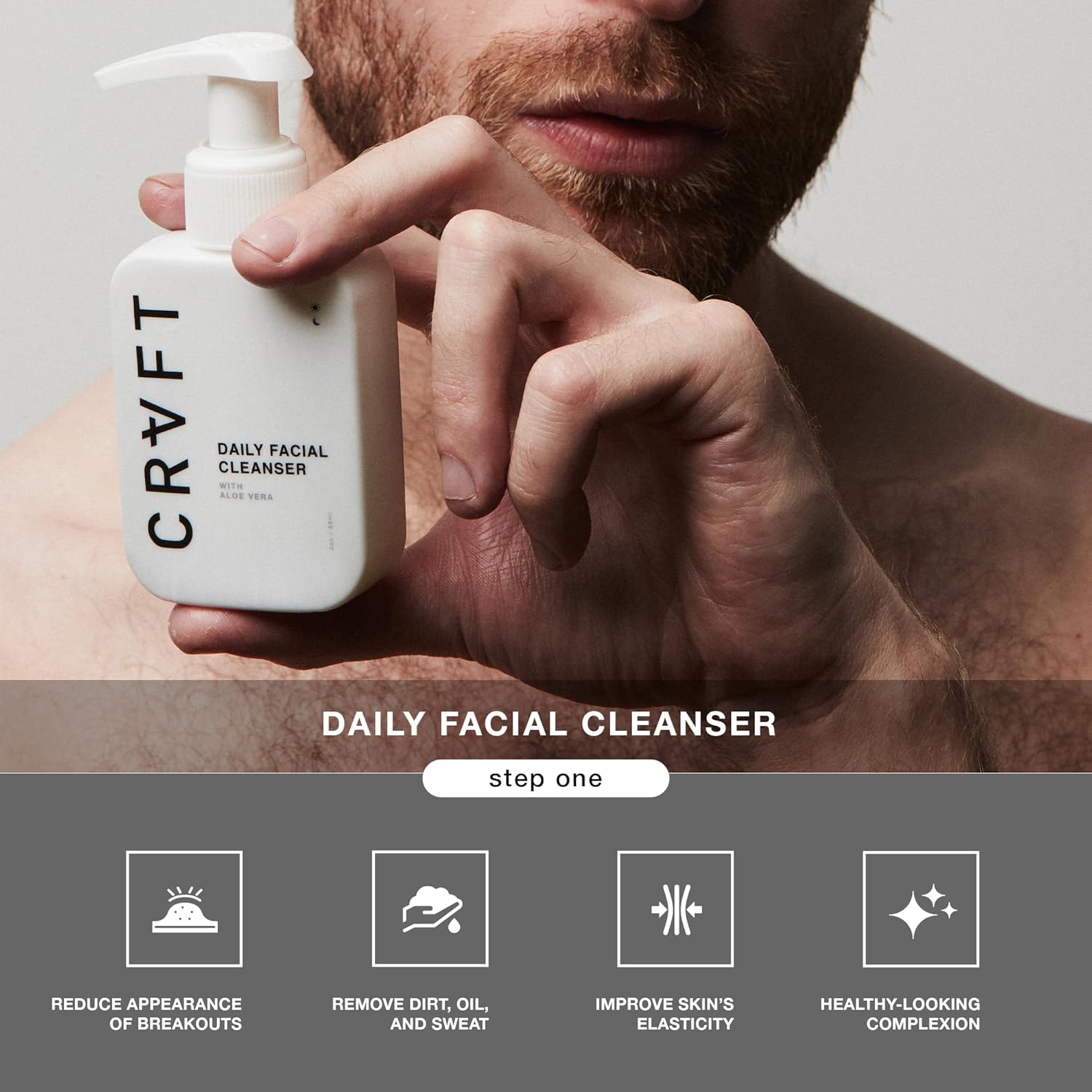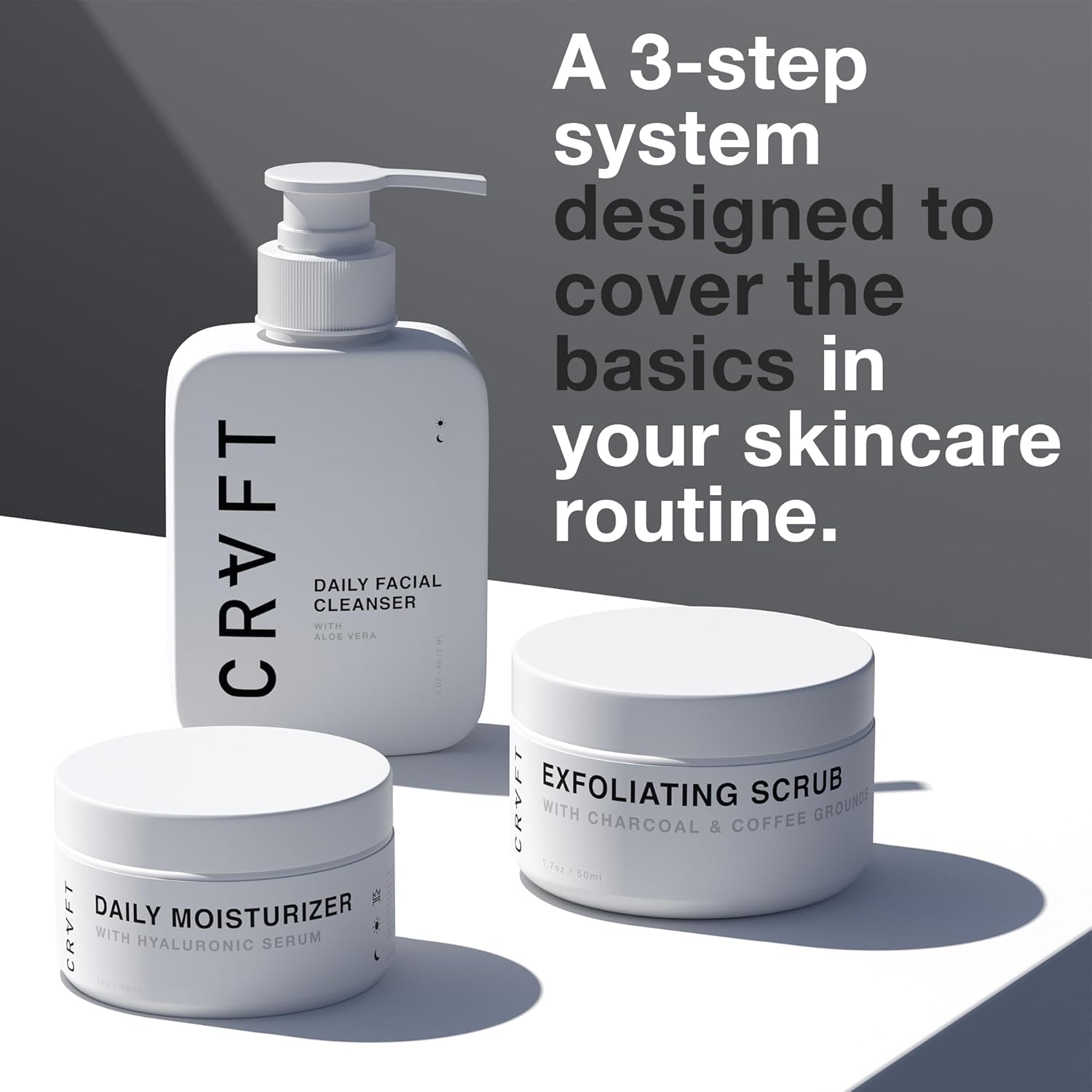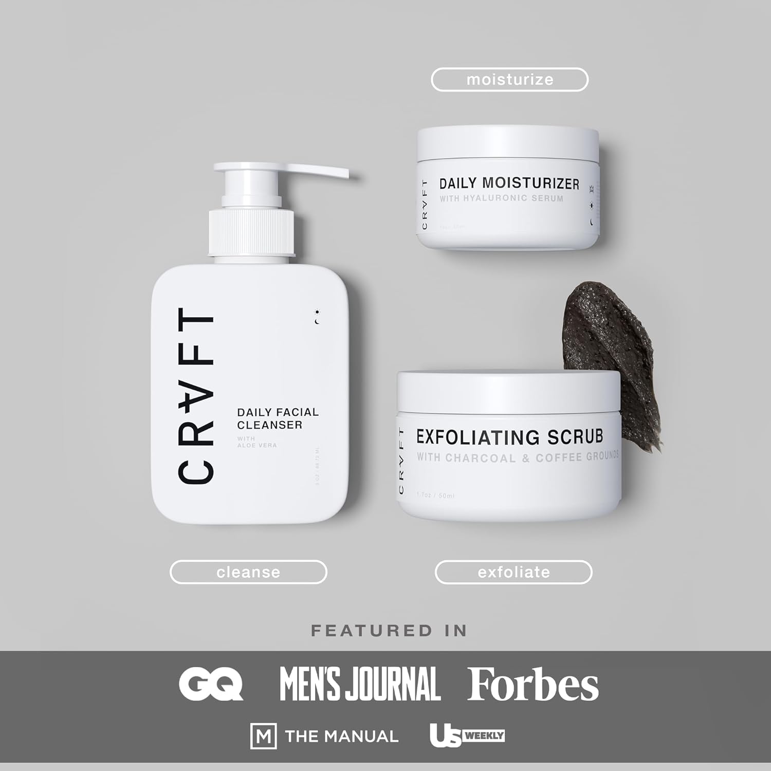 Hair Craft Co. CRVFT Face Care Set for Men, Aloe Vera Facial Cleansing Gel, 3 Ounce, Hyaluronic Moisturizer, Charcoal Scrub.