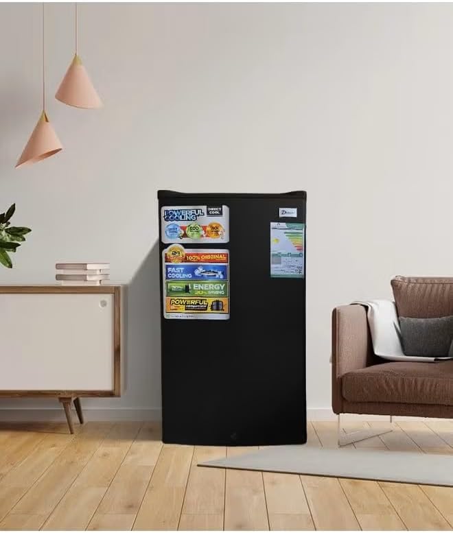 Experience efficient cooling with this sleek black single door refrigerator from Dansat. With its generous 83-litre capacity and compact dimensions of 86 cm height, 47.6 cm width, and 47.6 cm depth, this model DNFS140R-B is perfect for small households or as a secondary fridge. The rapid cooling performance ensures your beverages are chilled quickly, while the thoughtfully designed crisper keeps your fruits, vegetables, meats, and dairy products fresh for longer periods. Operating with low noise levels and efficient power