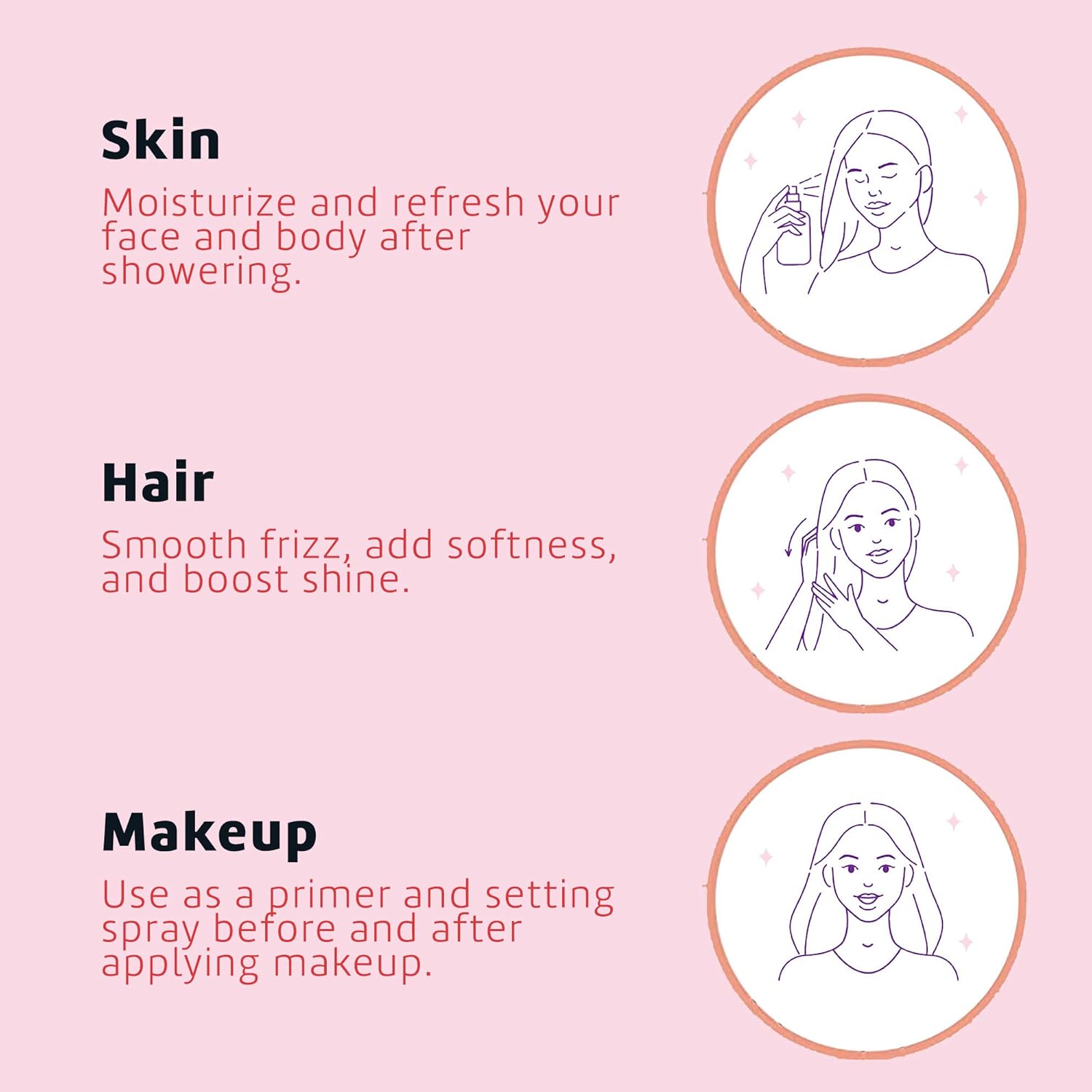 This rosewater spray is a great moisturizer and humectant for hair too! Spray all over your face, hair and body after you shower or anytime during the day for a quick lavishing refresh.