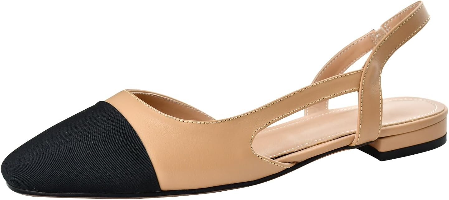Debaishi Slingback Flat Pumps for Women,Chunky Heels Round Toe Two Toned Casual Slingback Sandals Fashion Dress Low Heel Sandals