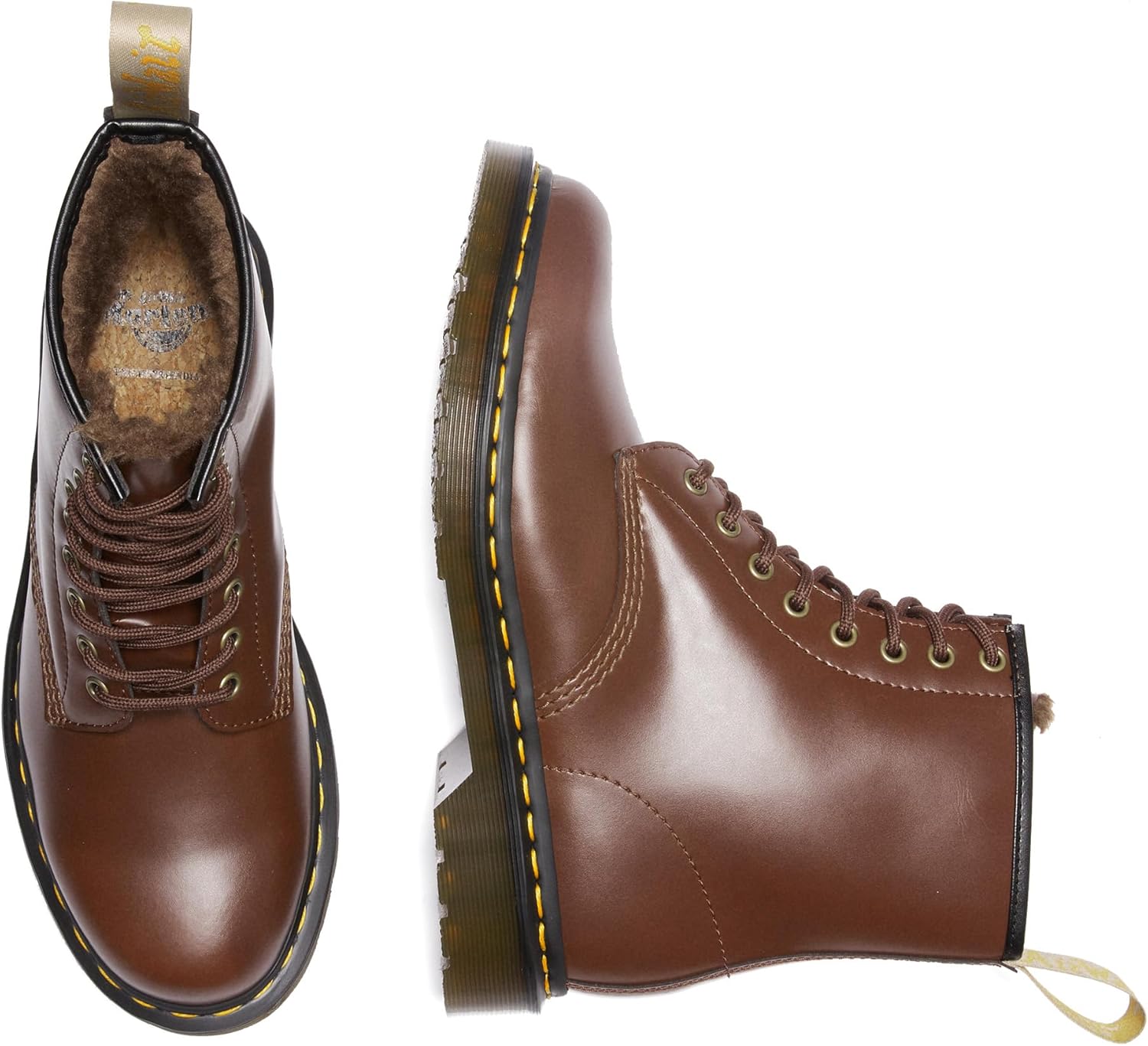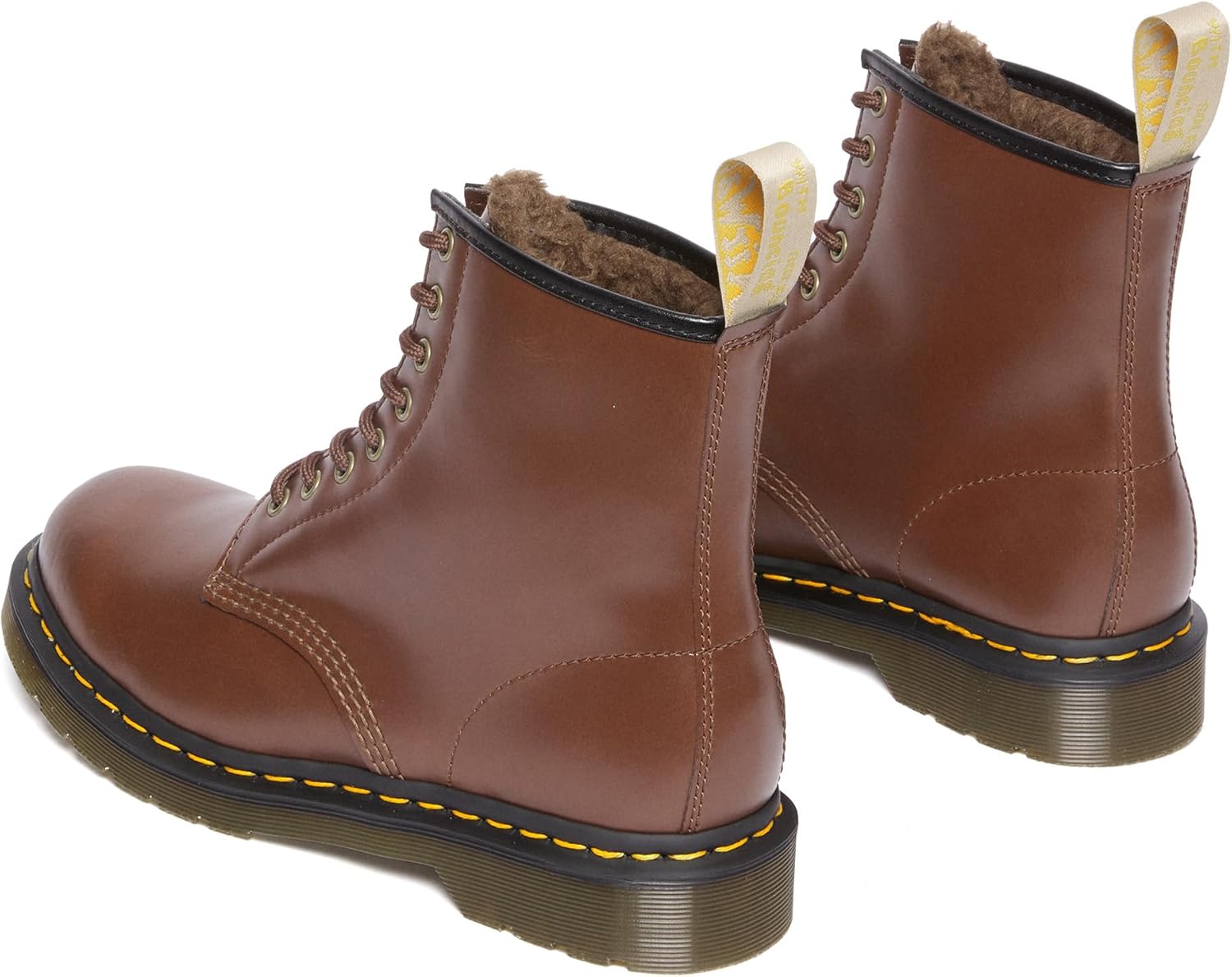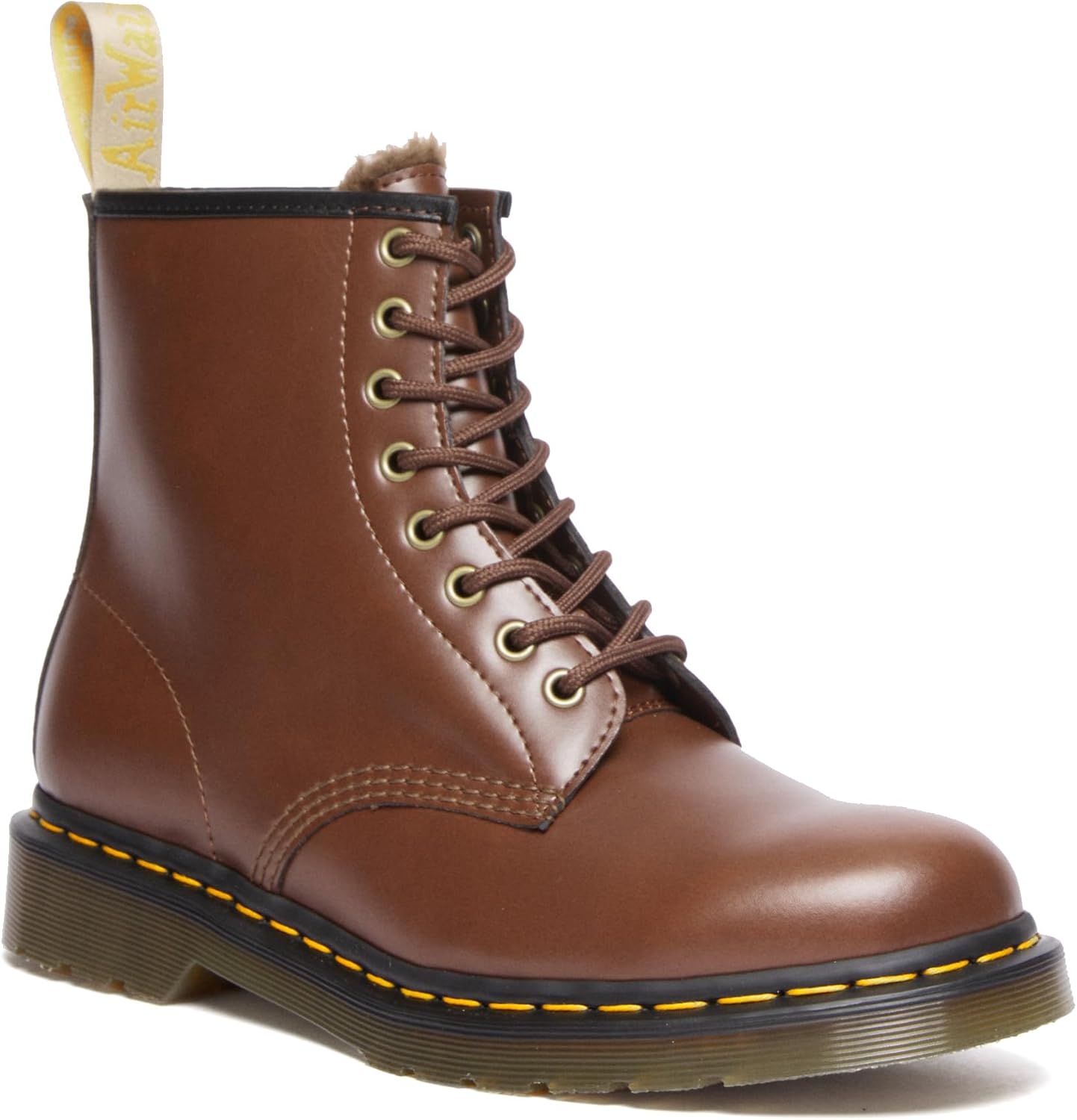 The 1460 is the original Dr. Martens boot. The boot’s recognizable dna looks like this: 8 eyes, grooved sides, a heel-loop, yellow stitching, and a comfortable, air-cushioned sole. But this boot goes one step further, with a cherry-red synthetic material and a 100% vegan construction.