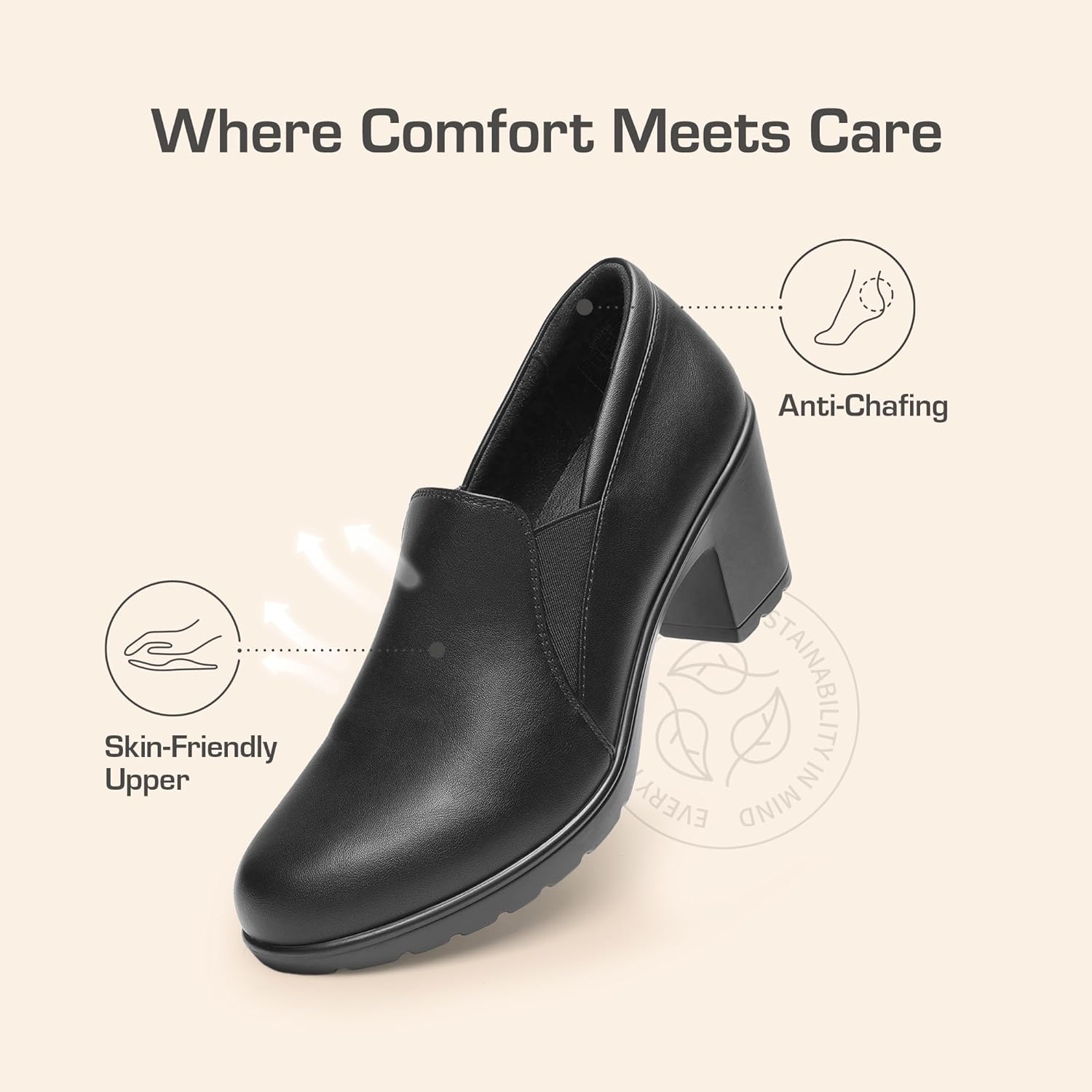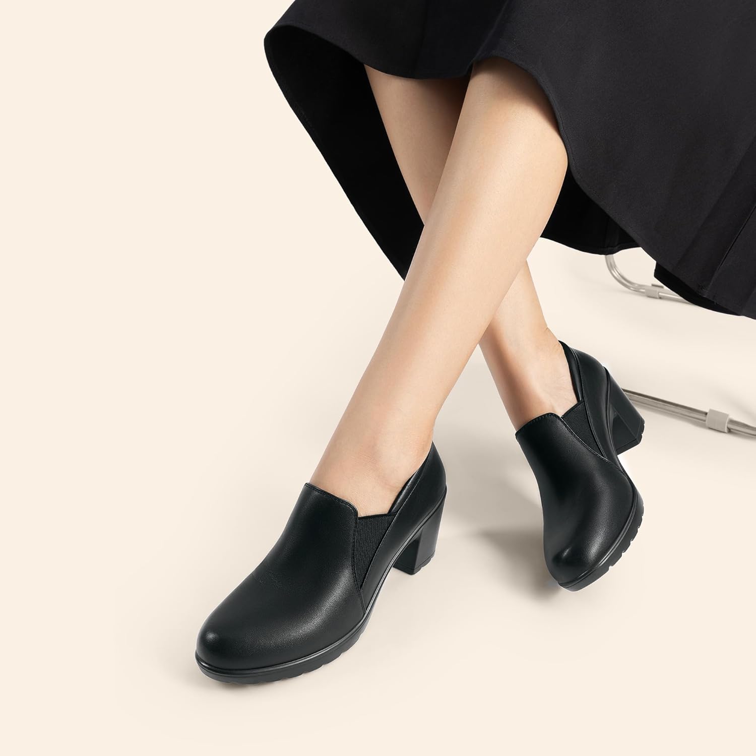 These pumps are perfect for those who are standing or walking all day at work. The 7cm block heel is not too high, but it is a must-have for your professional and comfortable work outfit. These pumps are easy to use during any season.