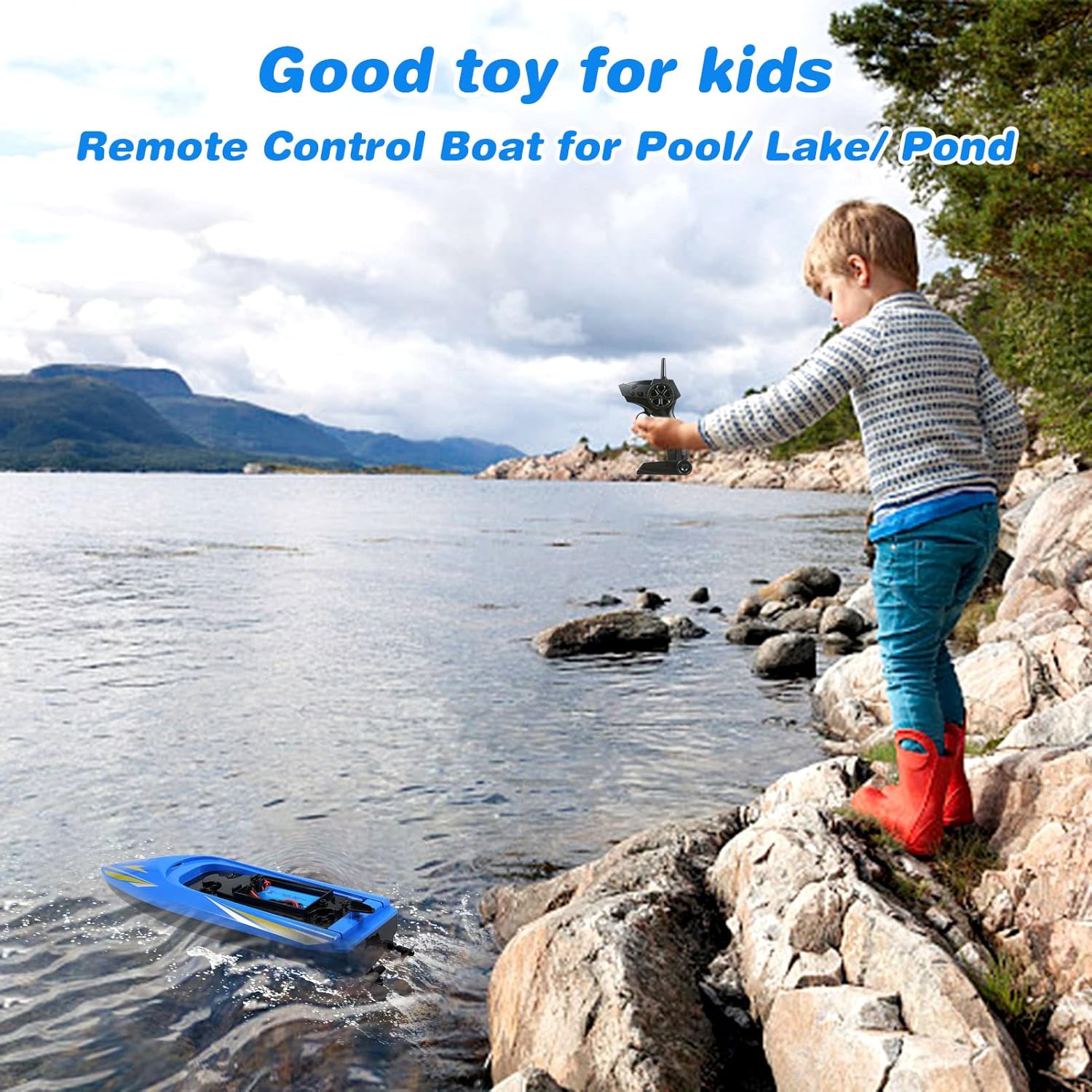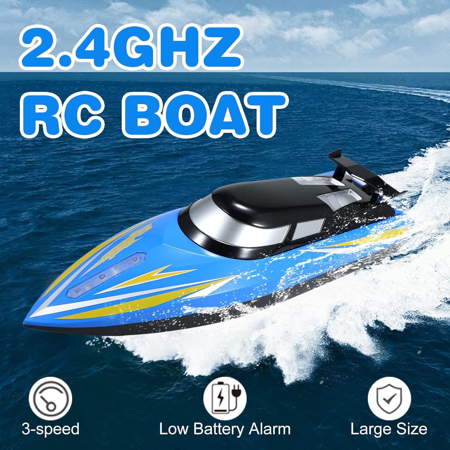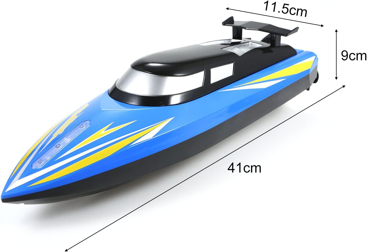 🌷 Large Size: RC boat size is 41*11.5*9cm, Using brushed motor, strong power, let you play freely. Streamlined design to better reduce driving resistance.