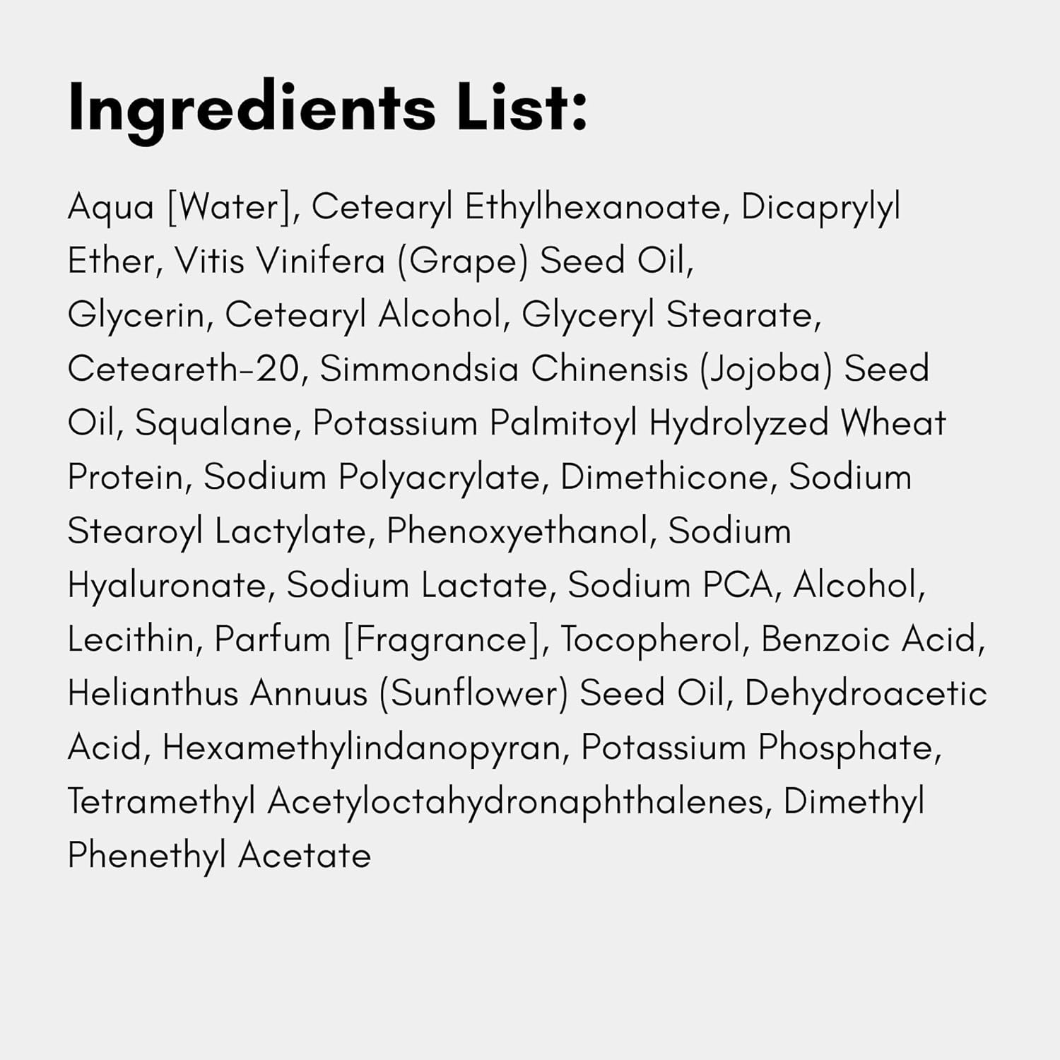 Valuable grape seed oil, rich in antioxidants, jojoba oil and squalane enhance this formulation.