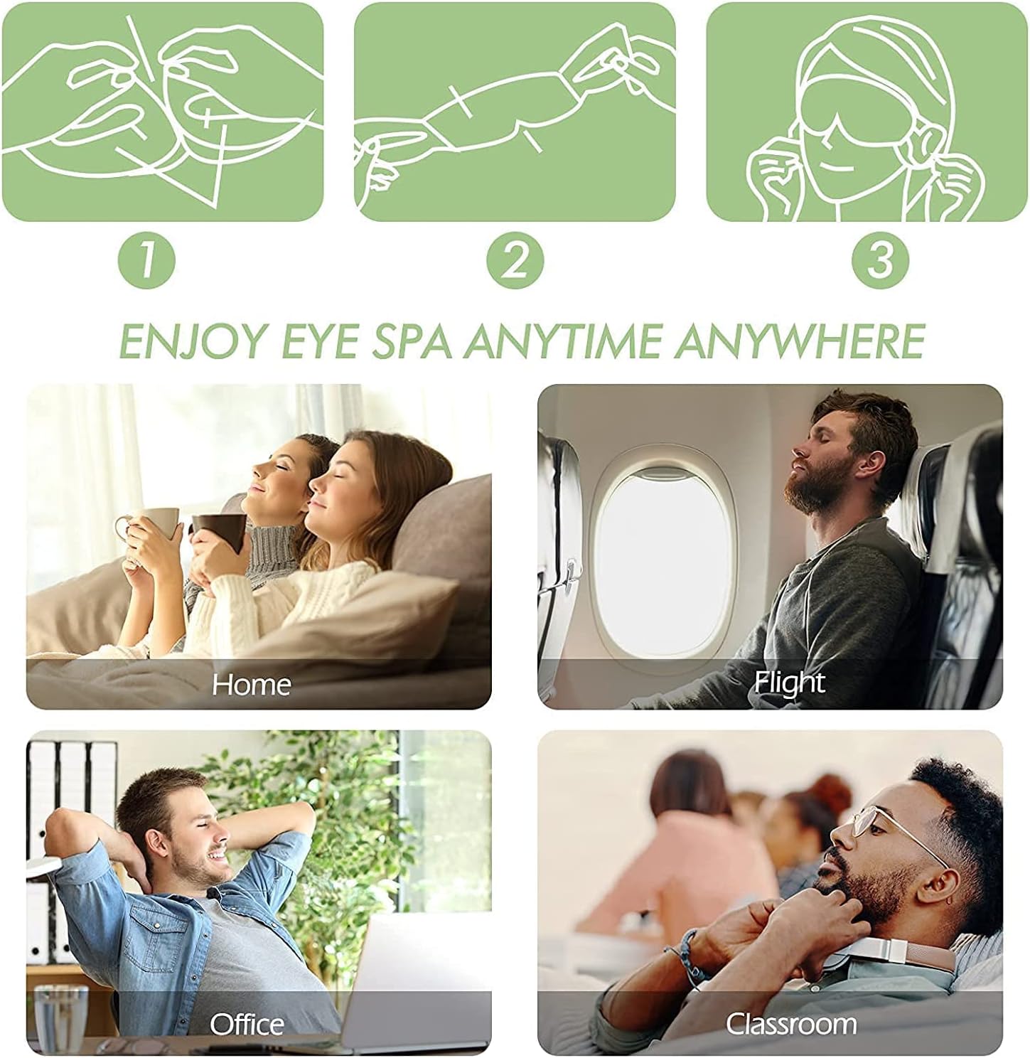 【QUALITY MATERIALS AND EASY OPTION】Our warm eye mask is made of soft medical non-woven fabric, soft to the touch. Each piece of the heated eye steam mask is individually wrapped, insulation from pollution. Small size and lightweight, one of the necessary travel accessories, it’s easy to put the eye mask in your purses and handbags, backpacks, or others. You can enjoy a disposable eye spa day anywhere, at home or in the office/classroom, even on a trip