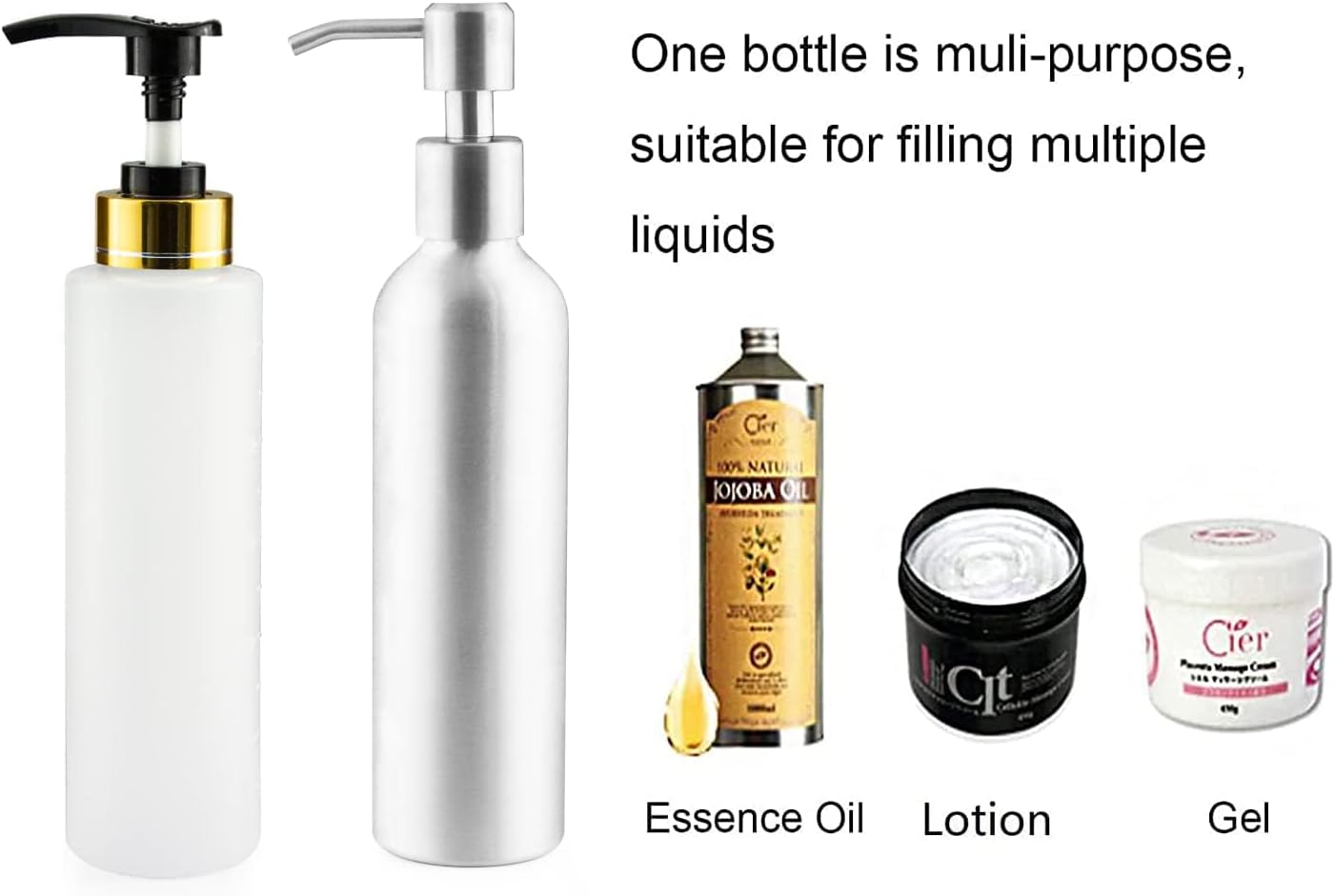 【Optimal use】Metal bottles for essential oils and plastic bottle for water or creams. The first pump out of the pump head of the oil or gel can not feel the temperature, after the second pump out of the product is very hot.