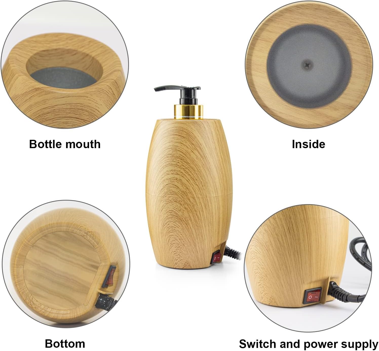 【Convenient Design】 The oil warmer heater comes with one pump bottle that is compatible with standard-sized bottle. You can easily replace the entire bottle with a third-party option or switch out the nozzle to your preference, making it versatile and user-friendly.