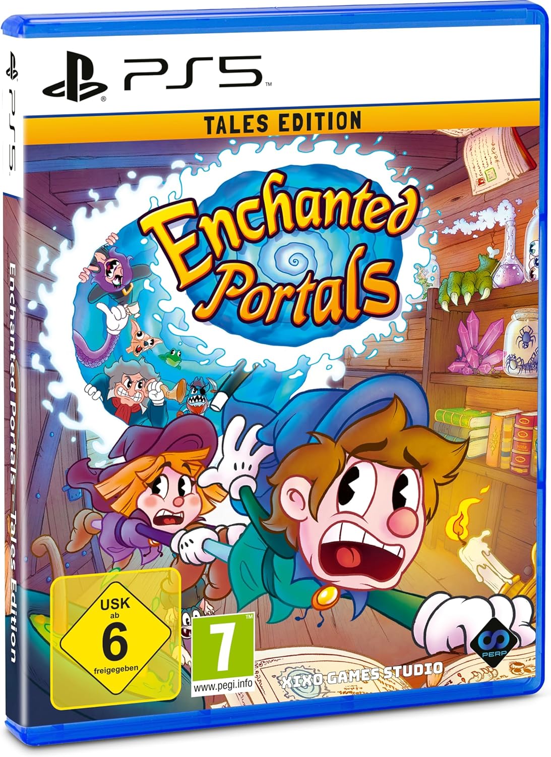 “Machen Sie sich bereit für ein Abenteuer wie kein anderes, wenn die Nachwuchsmagier Bobby und Penny zwischen den Dimensionen festsitzen. Auf ihrer Reise durch eine Vielzahl von bezaubernden Welten liegt es an dir, ihnen zu helfen, sich den Weg zurück in ihre eigene Dimension zu erkämpfen und das Zauberbuch zurückzuerobern. Enchanted Portals ist ein 2D-Buy-Platformer, der mit Musik, charmanter altertümlicher Grafik und ununterbrochener Komik aufwartet und dich auf Trab halten wird. Egal, ob du alleine oder mit einem Freund spielst, die Magie hört nie auf und die Action ist immer rasant und skurril. Begleite Bobby und Penny auf ihrer Suche und sieh, wohin das Abenteuer dich führt!”